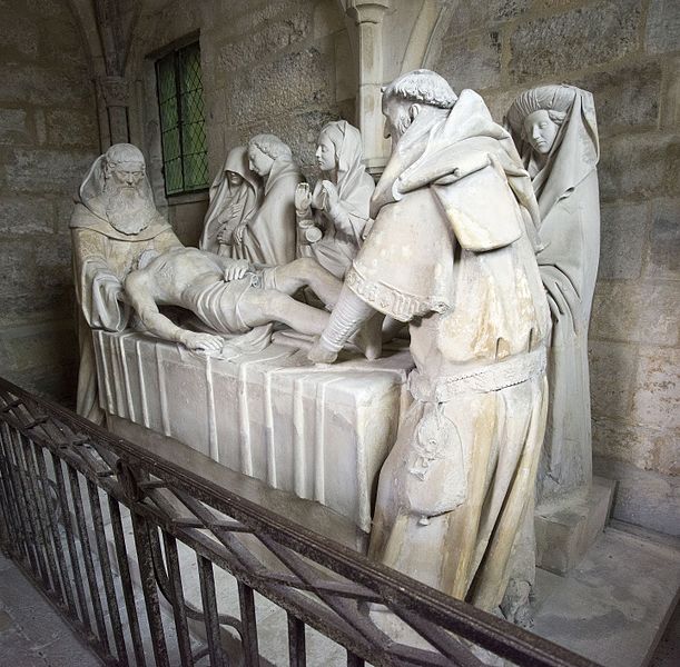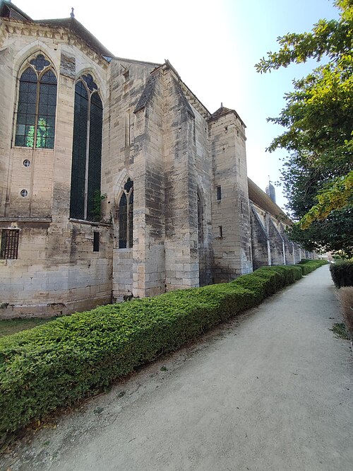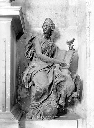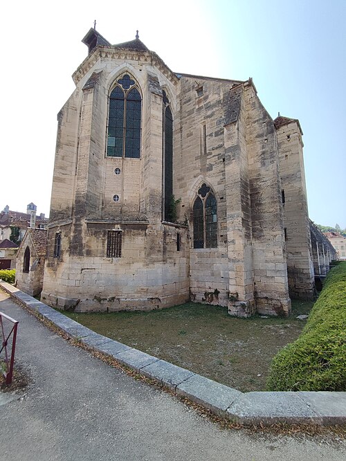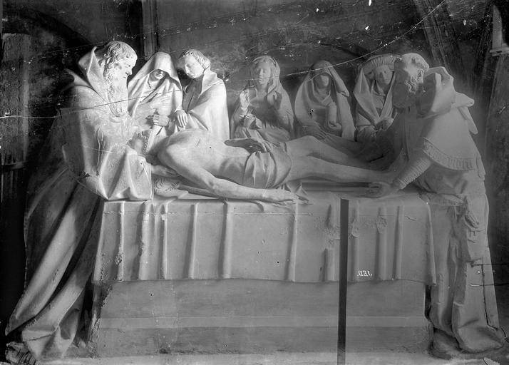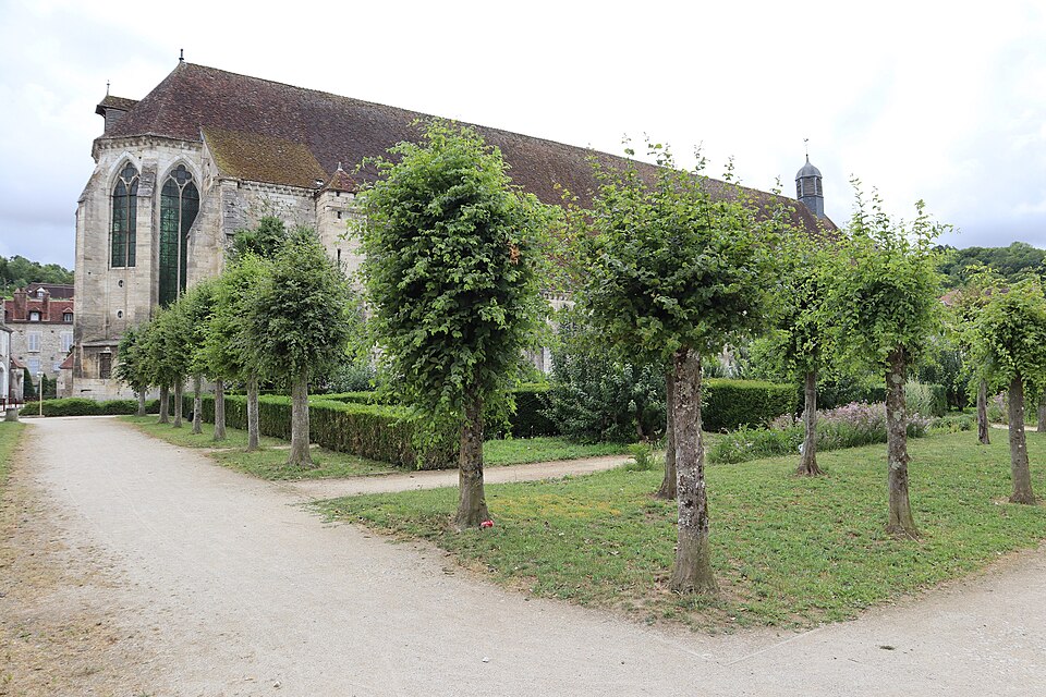 Parmi les éléments remarquables, la méridienne tracée au sol de la Grande Salle en 1785-1786 fut réalisée par Dom Camille Férouillat à l'initiative du maître des requêtes Guermadeuc, avec la vérification des calculs par l'astronome Lalande ; elle permet d'indiquer le midi solaire vrai et le midi moyen et de repérer les mois, les saisons, solstices, équinoxes et signes astrologiques. Le tombeau de Louvois, transféré à Tonnerre en 1819, est un monument de marbre et de bronze réalisé par Girardon, Desjardins et Van Clève ; Louvois y figure allongé, entouré de sa femme, d'allégories et d'armoiries. Le tombeau primitif de Marguerite, en cuivre et bronze, fut pillé en 1793 mais ses restes furent préservés ; le tombeau actuel de 1826 en marbre blanc la représente assise et couronnée, la Charité soutenant son corps et tenant son cœur, allusion au don mentionné dans le codicille de sa fondation. La Vierge à l'Enfant et au Buisson ardent, commandée vers 1305, est une statue dorée de 2,10 m placée au-dessus du maître-autel, où Moïse en prière figure aux pieds de la Vierge pour représenter l'ensemble de la Bible. La Mise au Tombeau de 1454, œuvre de Georges et Michiel de la Sonnette, est taillée dans la pierre locale, à l'origine polychrome, et met en scène le Christ allongé entouré de plusieurs personnages, deux gardes romains ayant disparu. Le maître-autel du chœur, daté du XVIe siècle, est en bois peint de style Renaissance, encadré par piliers corinthiens et orné de statues de saint Augustin et de saint Pierre, avec un tableau du crucifiement de saint Pierre surmonté de la Vierge dorée.