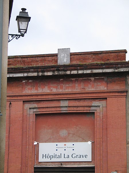 L'hospice de La Grave, implanté sur la rive gauche de la Garonne dans le quartier Saint-Cyprien, est mentionné dès 1197 dans une charte de Raymond VI. Son nom provient de la grève le long de la Garonne où il a été construit. Initialement réservé aux pestiférés, il porte au XVIe siècle le nom d'hôpital Saint-Sébastien et accueille les malades isolés hors des remparts, y compris dans des tours et des prés réquisitionnés lors des grandes poussées épidémiques. Les poussées de peste du XVIIe siècle frappent durement l'établissement et, en 1629, tous les malades soignés à l'hôpital des pestiférés succombent à la contagion. À partir de 1647, dans le cadre du Grand renfermement, l'hôpital devient hôpital général Saint-Joseph de La Grave et reçoit les pauvres, les mendiants, les prostituées et les aliénés, avec la vocation affichée de soigner, nourrir et instruire. Des travaux d'ampleur réalisées entre 1661 et 1684 créent de grandes cours ; un incendie détruit cependant une partie des bâtiments en 1687. Jusqu'à la Révolution, l'institution fonctionne comme une fondation autonome sous l'autorité ecclésiastique et municipale, mais connaît de graves difficultés financières au XVIIIe siècle, aboutissant à une faillite et à la vente de rentes et de biens. En 1778, Alexis Larrey est nommé chirurgien-major. Après 1789, la municipalité prend la gestion de l'hôpital, qui est rebaptisé Hospice de Bienfaisance en 1793 ; en 1797 il annexe des locaux militaires issus de l'ancien couvent des Clarisses et s'étend alors sur près de six hectares, devenant le plus vaste établissement toulousain. Au XIXe siècle, de nouveaux services médicaux, notamment une maternité, se développent et certaines parties du site reçoivent des aménagements datés de cette période. La chapelle Saint-Joseph, œuvre des troisième quart du XVIIIe et deuxième quart du XIXe siècle attribuée à Nelli et Delor, voit sa première pierre posée en 1758 par Gaspard de Maniban ; les travaux, interrompus à plusieurs reprises et marqués par des effondrements, sont achevés en 1845. La chapelle présente des fondations renforcées au béton et un dôme en bois recouvert de cuivre, et elle a été classée parmi les monuments historiques ; elle a été désacralisée en 2015 et transformée en musée. Sur le site subsistent des éléments architecturaux remarquables : les deux pigeonniers ou pavillons d'entrée qui encadrent le portail monumental et marquaient l'accès au secteur psychiatrique, le bâtiment rectangulaire du XVIIIe siècle dit des Dames de la Porte, à deux étages sur péristyle de pierre, ainsi qu'un bâtiment du XVIe siècle au sud-est de l'ancienne cour Saint-André doté de fenêtres à meneaux. L'ancienne pharmacie, située à l'angle sud-est de la cour Saint-Joseph, est entièrement revêtue de boiseries datées du début du XIXe siècle. Le site a fait l'objet de protections au titre des monuments historiques par une inscription partielle en 1986 et un classement partiel en 1988, et il a été documenté tant par des études que par des illustrations et photographies historiques ; parmi les publications récentes figure une monographie de Lise Enjalbert consacrée à l'hôpital Saint-Joseph de La Grave.