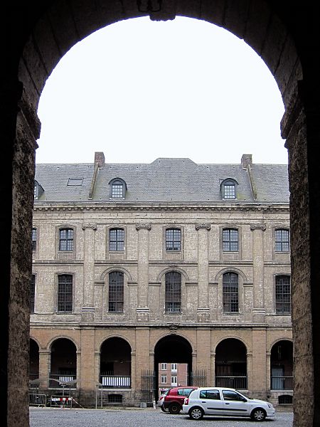 Les plans de Pierre Vigné de Vigny, inspirés de l'hôtel des Invalides, prévoyaient un ensemble rectangulaire avec six cours, dont seules quatre seront réalisées. Les bâtiments comportent un sous-sol demi-enterré, un rez-de-chaussée surélevé posé sur un important soubassement, trois étages dont un mansardé desservis par des corridors, et des combles. Établis sur soubassements de grès, ils sont construits en calcaire, pierre et briques, avec un dallage des couloirs en pierre bleue et des toits en ardoise. La façade, longue de 140 mètres, est encadrée par deux pavillons et percée en son centre d'un porche monumental légèrement en saillie, surmonté d'un fronton triangulaire orné d'un soleil, emblème de Louis XIV. La cour d'honneur, entourée d'arcades, reprend les motifs de la façade.