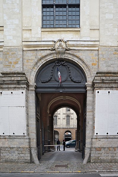 L'origine de l'institution renvoie à un édit de Louis XIV du 12 juin 1662 imposant la création d'hôpitaux généraux pour contenir les mendicités par l'enfermement et le travail. À Lille, devenue française en 1667, l'hôpital général ne se met en place qu'en 1738 ; la construction, confiée à l'architecte du roi Pierre Vigné de Vigny, débute en 1739 et l'hôpital ouvre en 1743, accueillant alors 500 adultes et 680 enfants, tandis que les travaux se poursuivent jusqu'en 1780. L'établissement est ensuite agrandi au cours du XIXe siècle, avec des opérations en 1824 et 1835 qui s'achèvent définitivement en 1846. Reconverti au début du XXe siècle en hospice pour personnes âgées, il accueille au début de la Première Guerre mondiale des blessés français et anglais, et sa population est estimée à environ mille huit cents personnes en 1915. La plupart des pensionnaires sont transférés en 1973 à la suite d'un scandale sur leurs conditions d'hébergement, mais l'établissement reste officiellement en activité comme maison de retraite jusqu'en 1988. Les bâtiments arrière sont démolis vers 1980, ne conservant que la façade et la partie entourant la cour derrière le portail ; une maison de retraite est reconstruite en partie sur l'emplacement des ailes détruites. L'idée d'y installer l'Institut d'administration des entreprises est lancée en février 1993 ; trois ans plus tard, les locaux du bâtiment central rénovés et réaménagés accueillent leurs premiers étudiants. Au rez-de-chaussée d'une des ailes sur la cour d'honneur, l'ancienne pharmacie et sa salle de préparation avec fourneau ont été conservées ; des visites y sont organisées par l'Association du musée hospitalier régional de Lille.