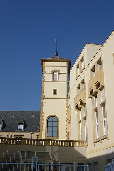 L'hôpital fut construit pour les pauvres sur un terrain de vergers et jardins en dehors de l'ancienne enceinte, l'une de ses faces donnant sur le champ à Seille, et il dut beaucoup aux libéralités de la cité ; l'accès se faisait par un parvis et une cour où se trouvait l'église. Le Neufbourg et l'hôpital furent réunis à la ville vers 1358, et au XVIe siècle, avec le recul des remparts, le site se retrouva intégré au tissu urbain. L'hospice a connu divers usages et possessions : il garda le trésor de la ville jusqu'en 1304, possédait un cimetière et la chapelle Saint-Louis (rasée en 1552), et son grenier servit à entreposer des pièces d'artillerie en 1406. Plusieurs autels et objets liturgiques y furent fondés ou déplacés, et le chœur conservait une statue équestre de saint Martin.