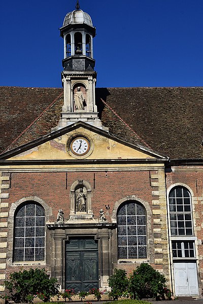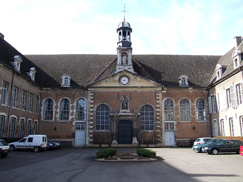 Après consultation de la population le 25 mars 1688, les magistrats accordèrent l'emplacement et les fonds, et la construction commença rapidement. Une première salle des malades de 18 lits et une aile destinée à la communauté des sœurs furent élevées, comportant salle de réunion, salle du conseil, dortoirs, cuisines, réfectoire, infirmerie des sœurs et apothicairerie. Entre 1730 et 1734 une chapelle dédiée à Saint-Louis fut bâtie à droite de la salle des malades ; entre 1765 et 1767 une nouvelle salle, financée par une bienfaitrice, sépara les hommes et les femmes à droite de la chapelle. En 1859 l'aile nord fut aménagée pour les infirmes et les vieillards, puis léguée aux hospices par la veuve Baudot le 23 juillet 1862, le legs réservant deux lits à des indigents infirmes de Pagny-le-Château. En 1877-1878 les deux pavillons du portail furent aménagés sous la direction de l'architecte Louis Belin, de Dijon.