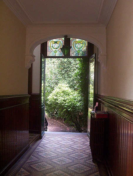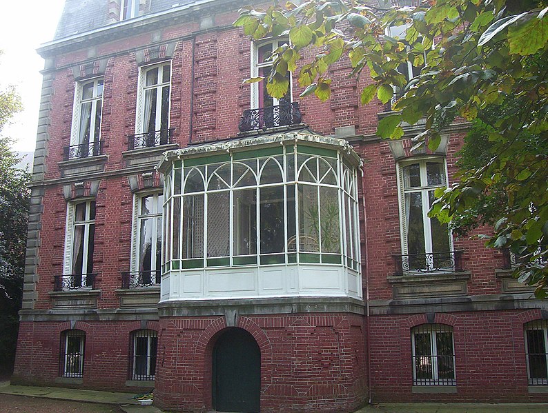 Situé entre cour et jardin, l'hôtel particulier a été construit entre 1878 et 1879 par l'architecte amiénois Charles Pinsard. De style néo‑Louis XIII, alors très prisé dans l'architecture résidentielle amiénoise du dernier quart du XIXe siècle, il présente une élévation composée de panneaux de brique avec chaînage d'angles, pilastres médians et encadrements de baies en pierre de taille traités en bossage. Une galerie vitrée relie le corps d'hôtel à la rue ; à son débouché, une grille en ferronnerie est flanquée de deux pavillons servant de remises. L'hôtel a conservé la majeure partie de ses décors intérieurs originels, en particulier plusieurs verrières : une verrière néo‑Renaissance à la porte d'entrée, signée du maître verrier amiénois Leroy ; des verrières de la galerie, datées de la fin du XIXe et du début du XXe siècle, ornées d'un décor stylisé de nymphéas ponctué de cabochons et de cives ; et une verrière de la salle de bains à décor floral gravé au sable. Les pièces de réception ont préservé leurs décors néo‑Rocaille ou néo‑Louis XVI, tandis que les pièces de service, comme la cuisine et l'office, ont maintenu leur authenticité primitive.