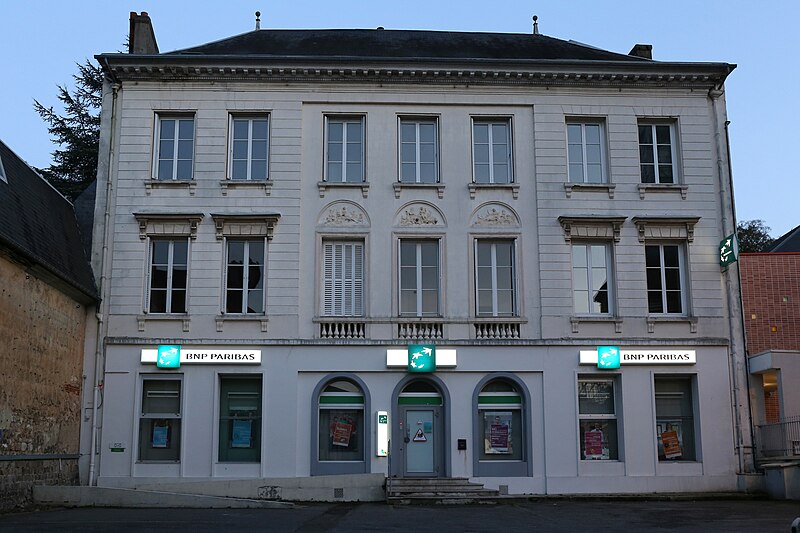 À la fin du XVIIIe siècle, Auguste Fauquet fit édifier au cœur de la ville, de part et d’autre d’un passage, deux fabriques jumelées en brique enduite, composées d’un rez-de-chaussée, d’un entresol et d’un étage carré où l’on tissait des mouchoirs en coton. Les travées donnant sur le passage sont rythmées par une série d’arcatures. Dans la première moitié du XIXe siècle, un logis en pierre de taille calcaire, orné d’un fronton décoré d’une scène mythologique, fut élevé en fond de cour. Une fontaine, exécutée à la fin du XIXe siècle par le fondeur Ducel, occupe la cour. L’activité des deux fabriques est encore attestée en 1847. Auguste Fauquet, maire adjoint de Bolbec de 1854 à 1856, y est mort. L’ensemble, qui comprend l’hôtel et les fabriques, abrite aujourd’hui une banque.