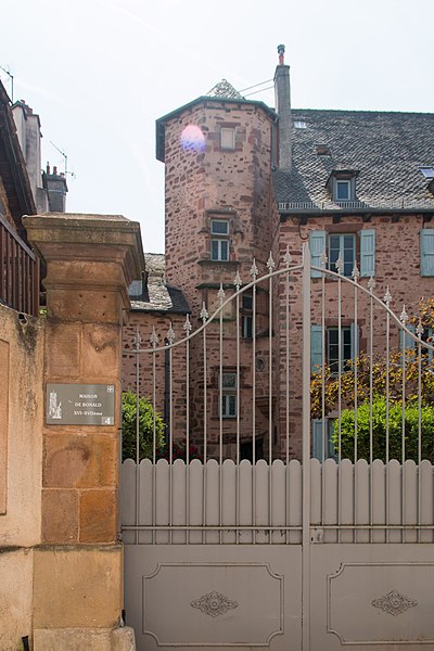 L'hôtel de Bonald a été édifié vers 1500 par Bertrand de Cénaret, archidiacre de Rodez, qui l'habitait au début du XVIe siècle. Il semble résulter de la réunion de deux édifices antérieurs ou de l'agrandissement d'un premier bâtiment, comme le signale la chaîne d'angle d'un bâtiment au sud, à gauche de la porte. Côté jardin se situe une tour à pans coupés qui abrite l'escalier, et une tour ronde en encorbellement s'intercale entre la maison et cette tour d'escalier ; une construction annexe complète l'ensemble. Côté rue, deux pavillons latéraux encadrent un portail de pierre relié aux constructions par des murs incurvés. L'entrée de la cour sur la rue Séguy est également encadrée par deux pavillons, vraisemblablement élevés dans le dernier quart du XIXe siècle. L'escalier en vis possède un noyau hélicoïdal avec un axe central dégagé, offrant une visibilité de haut en bas. La tour d'escalier présente des fenêtres à demi-croisées soulignées d'un larmier saillant ; ces éléments, ainsi que la vis à noyau évidé, évoquent le premier quart du XVIe siècle. Les grandes fenêtres de la façade sur rue, couvertes de linteaux délardés en arcs segmentaires, témoignent de remaniements importants au XVIIIe siècle. Au rez-de-chaussée, la porte ogivale conserve des vantaux en bois épais du XVIIe siècle. De même, les portes sur la rue de Bonald et sur la cour conservent des vantaux du XVIIe siècle.