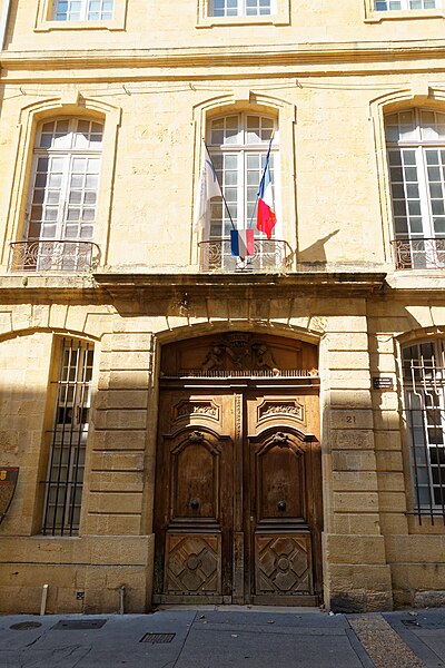 L'hôtel Boyer de Fonscolombe, dit aussi hôtel de Saporta ou hôtel de Vitrolles, est un hôtel particulier situé 21 rue Gaston-de-Saporta à Aix-en-Provence (Bouches-du-Rhône). Il a été construit vers 1650 pour Charles de Grimaldi, marquis de Régusse, président de chambre au Parlement. Vendu en 1724 aux Forbin, seigneurs de La Barben, il passe en 1743 aux Boyer de Fonscolombe, qui réduisent la cour-jardin lors d'un partage avec l'hôtel des Thomassin de Saint-Paul. La façade est redessinée en 1757 par Laurent Vallon, qui lui donne un aspect simple et horizontal marqué par l'absence de mascarons et de pilastres, l'emploi d'un décor à refends et de corniches soulignées. L'arc de la porte à carrosse, surbaissé et presque horizontal, participe au même souci d'économie ornementale. La fille unique héritière, Irène Boyer de Fonscolombe, épouse en 1822 Charles Auguste de Saporta ; leur fils aîné, Gaston de Saporta, hérite de l'hôtel. Le bâtiment est classé au titre des monuments historiques depuis le 29 décembre 1989. Des ressources et notices sont accessibles sur Wikimedia Commons, dans les bases Mérimée et Structurae, ainsi que sur les portails consacrés à Aix-en-Provence, à l'architecture et aux monuments historiques.