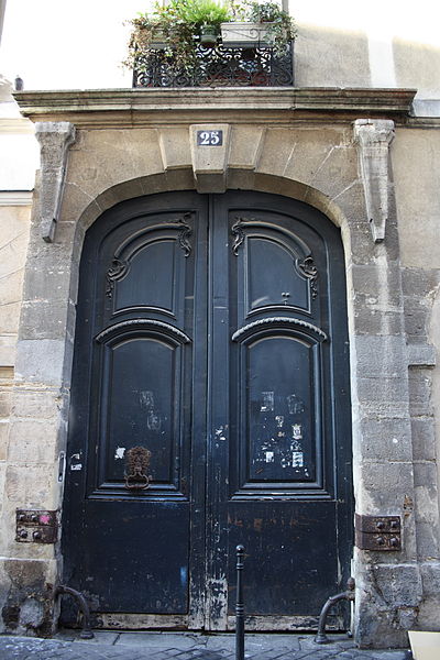 Façade sur rue et le versant de toiture correspondant ; la façade et la toiture du bâtiment du 18s au fond de la cour, y compris la cage et la rampe d'escalier : inscription par arrêté du 19 octobre 1965