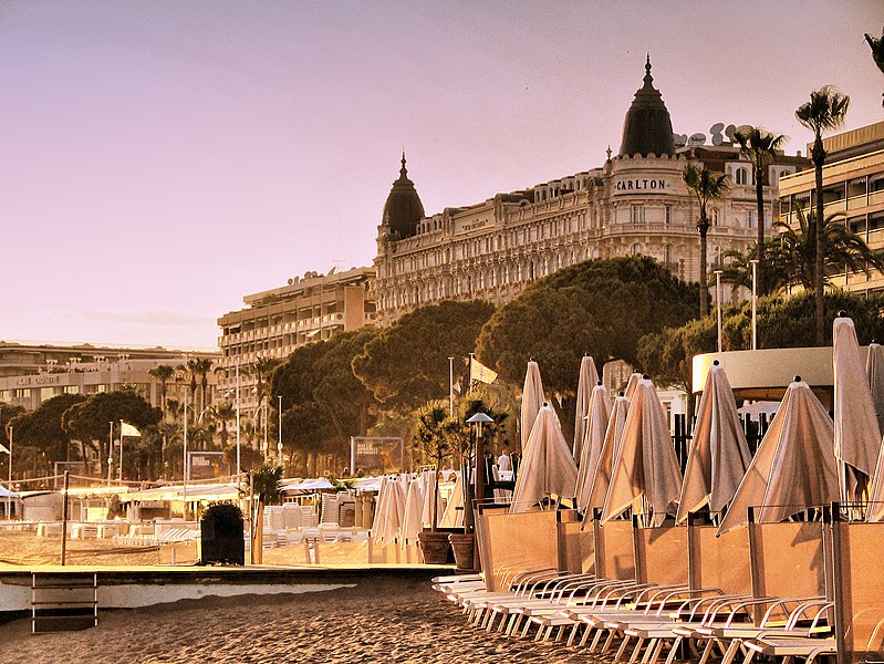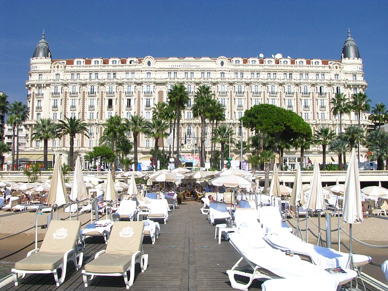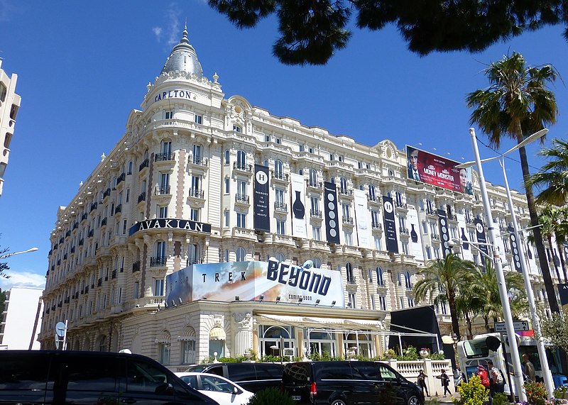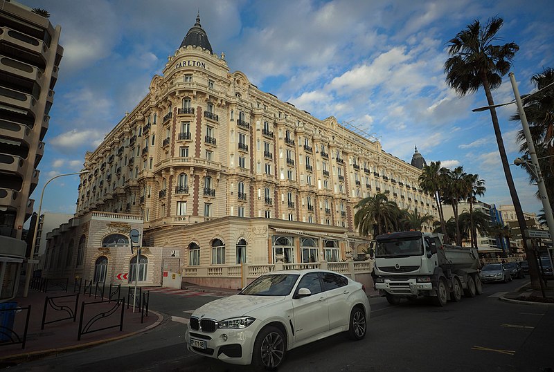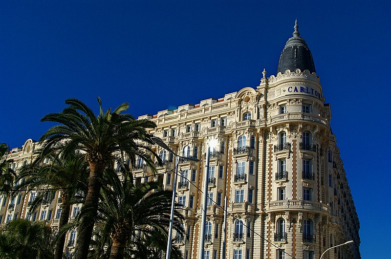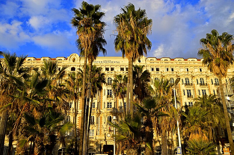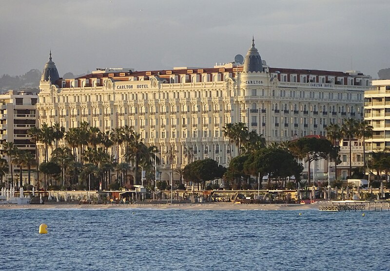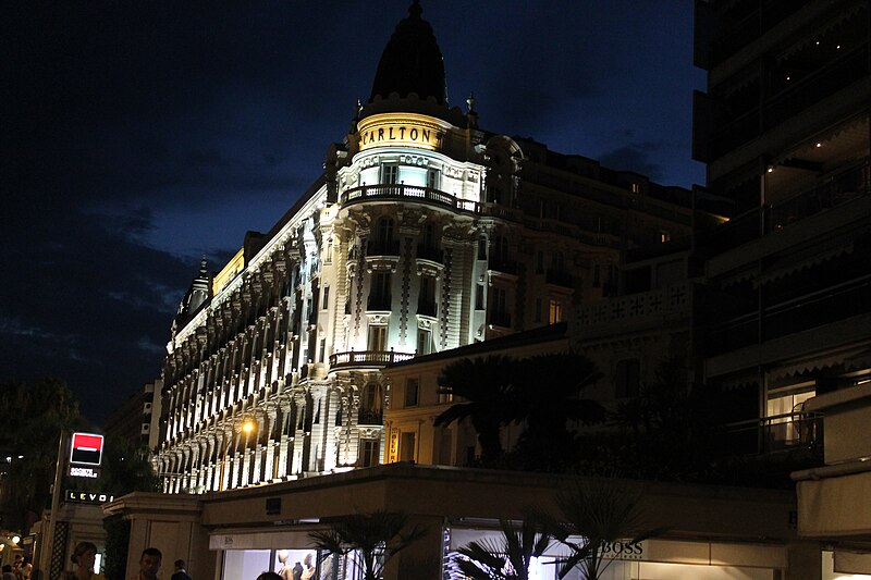 L’Hôtel Carlton est un palace situé sur le boulevard de la Croisette à Cannes, en bord de mer. Construit pour Henri Ruhl par les architectes Charles Dalmas, de Nice, et Marcellin Mayère, de Cannes, il a été édifié en deux tranches entre 1909-1910 et 1912-1913 et compte 355 chambres ou appartements. La façade présente un enduit bicolore imitant la pierre et un décor moulé en ciment. En 1911, Casimir Reynaud et ses associés rachètent le Carlton ainsi que l’Hôtel de la Plage, ce dernier étant démoli pour doubler l’édifice et ajouter une seconde tour lors de l’extension de 1912-1913 ; la famille Reynaud et ses associés conserveront l’hôtel près d’un demi-siècle. L’établissement est partiellement réquisitionné comme hôpital pendant la Première Guerre mondiale, reste en activité hôtelière pendant la Seconde Guerre mondiale et se lie au monde du cinéma dès la création du Festival de Cannes en 1946. En 1985 l’architecte Bernard Zemb réaménage les combles et propose l’ajout de deux ailes en rez-de-chaussée sur les terrasses d’angle. La banque Morgan Stanley cède en 2011 son portefeuille d’hôtels, dont le Carlton, à Mansion Services Limited appartenant à Toufik Aboukhater, puis l’établissement devient la propriété du groupe qatari Katara Hospitality en 2014 et est exploité par InterContinental Hotels Group. En juillet 2013, lors de l’exposition Extraordinary Diamonds organisée par la maison Leviev, un individu s’empare d’une mallette de bijoux ; le butin, d’abord estimé à 40 millions d’euros, est ensuite réévalué à 103 millions d’euros. Pendant la pandémie de Covid-19, l’hôtel maintient son projet de rénovation et d’extension conduit en partenariat avec Vinci ; le chantier, d’un budget de 300 millions d’euros, s’achève en mars 2023 et l’établissement rouvre le 13 mars 2023 après trois ans de travaux. La rénovation, portée par l’architecte d’intérieur Tristan Auer et le paysagiste Land’Act, a créé deux extensions destinées à des suites de grand luxe, un jardin intérieur de 2 000 m² avec bar et piscine à débordement, un centre de fitness et de spa ainsi qu’un espace de conférence de 1 800 m². L’hôtel est inscrit au titre des monuments historiques depuis le 10 octobre 1984, figure à l’inventaire général dans le cadre du recensement du patrimoine balnéaire de Cannes et a reçu le label « Patrimoine du XXe siècle ». Classé cinq étoiles depuis le 3 août 2009, il dispose d’une plage privée de sable et d’un accès direct sur la Croisette ; le service voiturier-bagagiste a été fusionné lors de la réouverture de mars 2023. Le personnel parle plusieurs langues, notamment l’arabe, le néerlandais, l’anglais, le français, l’allemand, l’italien, le russe et l’espagnol, et le directeur est Pierre-Louis Renou depuis le 1er avril 2024. Situé dans le centre-ville de Cannes, quartier Centre–Croisette, l’hôtel se trouve à environ 1 km de la gare et du Palais des festivals, à 25 km de l’aéroport de Nice par la route du bord de mer, à 8 km d’Antibes, 30 km de Saint-Paul-de-Vence et à une cinquantaine de kilomètres de Monaco et de Saint-Tropez. L’établissement a par ailleurs servi de décor à plusieurs films, dont La Main au collet (1954) d’Alfred Hitchcock, La Bonne Année (1973) de Claude Lelouch, Quatre étoiles (2005) de Christian Vincent, Anthony Zimmer (2005) de Jérôme Salle et Le Siffleur (2010) de Philippe Lefebvre, et apparaît dans des clips tels que I’m Still Standing d’Elton John (1982) et World (The Price of Love) de New Order (1993).