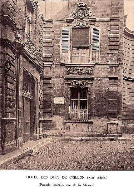 L'hôtel Berton des Balbes de Crillon, dit hôtel de Crillon, est un bâtiment situé à Avignon, dans le Vaucluse. Il a été construit à partir de 1648 pour Louis III de Berton, baron de Crillon, sur l'emplacement de la livrée cardinalice de Bertrand de Deaux ; la livrée avait été occupée en dernier lieu par Martín de Zalba, évêque de Pampelune et cardinal, et était ensuite passée à la famille Berton de Crillon. Le 10 septembre 1648 Louis III de Berton confia la démolition et la reconstruction de sa demeure aux frères maîtres maçons Jean et André Bontoux, d'après un dessin attribué à « Dominique Bourbon », autrement Domenico Borboni. Les travaux furent achevés en juillet 1649. Domenico Borboni, originaire de Bologne et présent à Avignon entre 1645 et 1663, est qualifié dans les documents de « peintre excellent » et a surtout exercé en tant que décorateur. Deux autres marchés sont signés en 1648 : l'un, le 22 octobre, avec le menuisier Jacques Planche pour les fenêtres de la façade, l'autre, le 7 décembre, avec le menuisier Jean Suchet pour la démolition et la réfection du couvert et des planchers. Louis III prévoyait que les ornements de la façade seraient exécutés et payés séparément ; Joseph Girard remarque que le sculpteur Jean-André Borde apparaît comme témoin dans deux prix-faits et l'envisage comme l'auteur probable de la décoration sculptée, de la cheminée et de l'escalier « à l'impériale », sans possibilité de déterminer s'il en fut le concepteur ou l'exécutant des dessins de Borboni. Les observateurs ont souligné le caractère italien de l'hôtel ; André Hallays écrit que « tous les ornements de la dernière Renaissance y sont accumulés », ce qui traduit un certain décalage stylistique par rapport aux tendances architecturales de 1648. En 1660, pendant le séjour de Louis XIV à Avignon, la Grande Mademoiselle séjourna dans l'hôtel et le trouva « fort belle, bâtie et peinte à l'italienne ». En 1693 une chapelle fut aménagée à l'intérieur par le maçon Pierre Thibaut sur des plans de Pierre Mignard. La baronnie de Crillon fut élevée en duché le 27 septembre 1725 par le pape Benoît XIII au profit de François Félix de Berton des Balbes de Crillon. La famille de Crillon, en faveur auprès de la cour de France, célébrait dans son hôtel les fêtes de la monarchie et y logea plusieurs personnalités de passage, notamment la princesse de Conti en 1730, le duc de Richelieu et le marquis de Rochechouart en 1744, le comte de Provence en 1777 et le duc de Cumberland en 1784. À la Révolution, l'hôtel fut saisi car le duc de Crillon-Mahon, grand d'Espagne, étant hors de France était considéré comme émigré ; il servit aux réunions de la Commission d'instruction sur le meurtre de Lescuyer et le massacre de la Glacière. Les représentants en mission Rebecqui et Bertin y logèrent en 1792, et le bureau du cadastre y fut installé en l'an III. L'hôtel fut rendu aux héritiers du duc de Crillon-Mahon, qui le vendirent ; il fut acquis par le négociant Deleutre en l'an XI, qui céda des dépendances. En 1887, Félix Théodule de Grammont racheta l'hôtel ; sa mère, Victurnienne Ernestine de Berton des Balbes de Crillon, avait épousé en 1829 Ferdinand Théodule, marquis de Grammont. La façade de l'hôtel est classée au titre des monuments historiques le 26 juin 1915 ; les façades sur cour et le grand escalier sont inscrits le 4 octobre 1932, et la toiture est classée le 26 mai 1951.