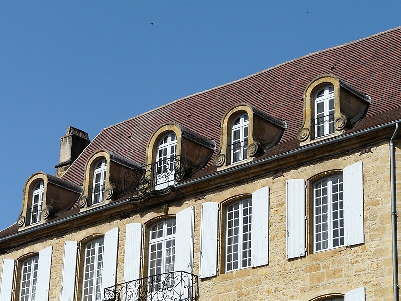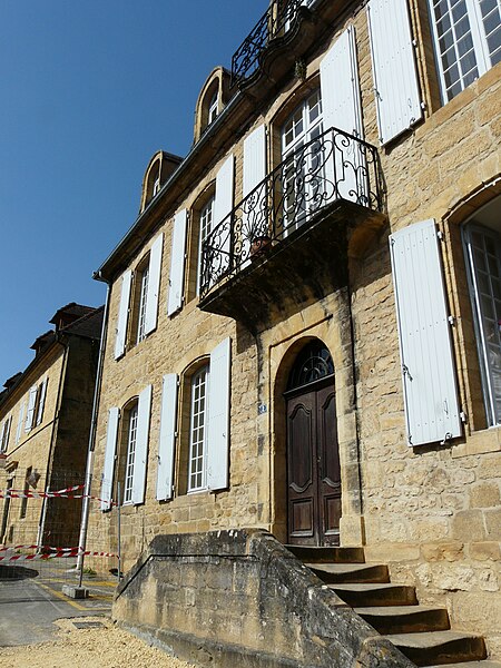 Maison du XVIIIe siècle, elle possède à l'étage une porte-fenêtre ouvrant sur un balcon en fer forgé d'époque. Les mansardes sont sculptées et l'angle du bâtiment est arrondi.