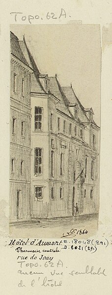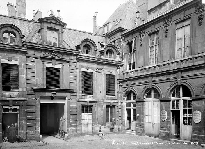 L'hôtel d'Aumont est un hôtel particulier situé rue de Jouy, dans le 4e arrondissement de Paris, au sud du Marais ; il abrite depuis 1959 le tribunal administratif de Paris. Au début du XVe siècle, l'emplacement était occupé par une propriété à l'enseigne du Dé appartenant à la famille de magistrats des Cousinot. En 1619, Michel‑Antoine Scarron, conseiller du roi, oncle de Paul Scarron et futur beau‑père d'Antoine d'Aumont de Rochebaron, acquiert le bâtiment, le juge vétuste et le fait démolir. L'hôtel actuel est édifié d'après des plans de François Mansart ; la construction, commencée en 1631, est achevée en 1649‑1650 par l'entrepreneur maçon Michel Villedo. En 1648, Antoine d'Aumont de Rochebaron et son épouse s'installent chez son beau‑père après avoir vendu leur hôtel de la place Royale ; ce dernier meurt en 1655. L'hôtel, remanié et agrandi, reçoit des décors de Charles Le Brun et de Simon Vouet, et son jardin à la française est probablement dessiné par André Le Nôtre. Un jardin a été reconstitué jusqu'au quai de la Seine. Des aménagements du début du XVIIIe siècle subsistent, notamment le cabinet neuf qui sert aujourd'hui de bureau au président du tribunal administratif. Quatre autres ducs d'Aumont occupent successivement l'hôtel jusqu'en 1742. Après la mort en 1753 de Victoire‑Félicité de Durfort‑Duras, épouse de Louis‑Marie‑Augustin d'Aumont depuis 1727, ce dernier vend l'hôtel en 1756. Plusieurs propriétaires se succèdent ensuite, parmi lesquels Charles Sandrié, entrepreneur des bâtiments du roi, et Pierre Terray, procureur général de la Cour des aides jusqu'en 1780 ; l'hôtel est vendu par les héritiers en 1795. De 1802 à 1824, l'édifice est loué pour abriter la mairie du 9e arrondissement de l'époque, puis, de 1824 à 1859, il accueille des internes du lycée Charlemagne. En 1859, la Pharmacie centrale de France devient propriétaire et transforme le site : le jardin disparaît sous des hangars et les salons lambrissés sont aménagés en bureaux et magasins. En 1899, l'hôtel sert de magasins d'expédition et de locaux administratifs pour la Pharmacie centrale de France. Racheté en 1938 par le département de la Seine, l'hôtel est remis en état et classé en 1946 ; il est consolidé par Michel Roux‑Spitz, puis restauré et agrandi en 1959 par Paul Tournon avec la collaboration de Jean‑Pierre Jouve et le concours de Jacques Dupont. Le tribunal administratif de Paris s'y installe en 1959. En 2003, on retrouve les restes de la reine Arégonde dans une armoire forte de l'hôtel, où Michel Fleury avait disposé un bureau jusqu'aux années 1970 en tant que vice‑président de la Commission du Vieux Paris. L'extérieur présente une porte d'entrée sur la rue de Jouy, une façade sur la cour intérieure et des détails sur la façade sud ; l'intérieur conserve la salle aux Poutres, le cabinet neuf et le salon Le Brun. L'hôtel est desservi par les stations de métro Pont Marie et Saint‑Paul.