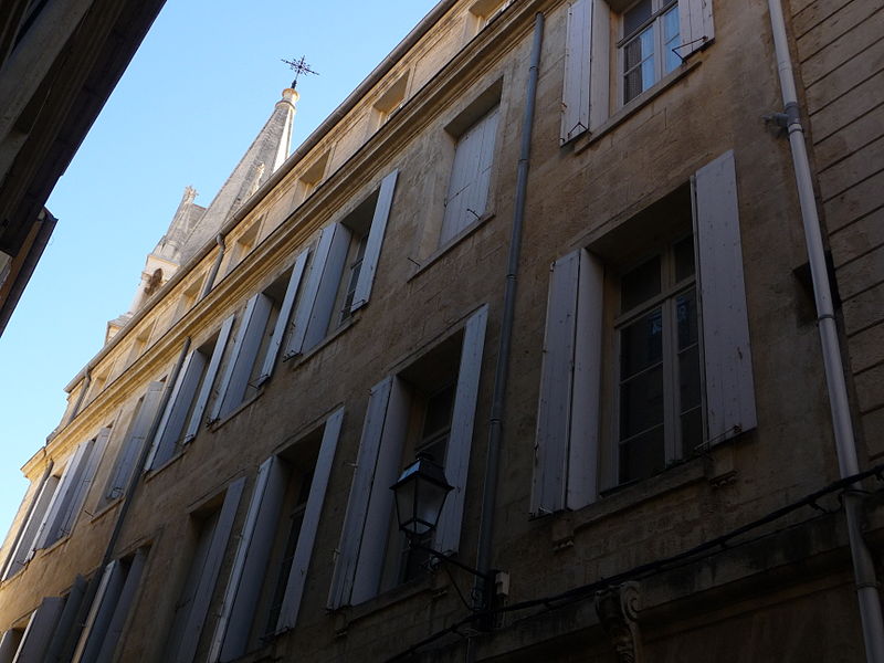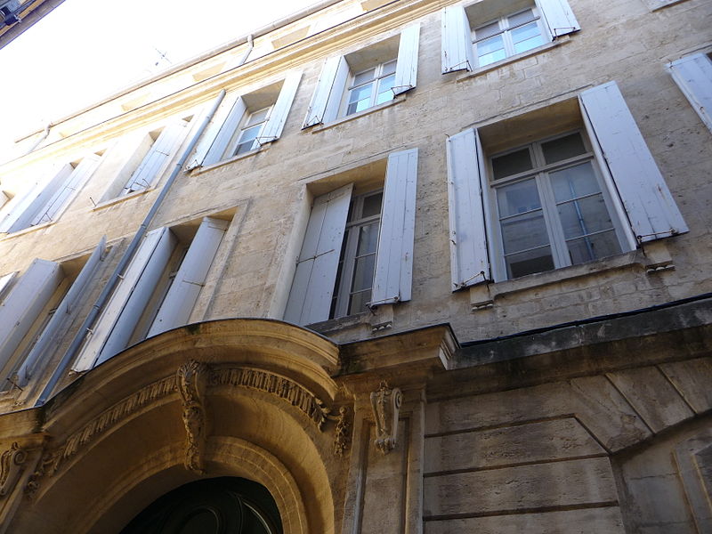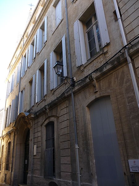 Au début du XVIIIe siècle la parcelle était divisée en plusieurs biens ; en 1718 Daniel Chaunel, conseiller du roi et receveur général du taillon, acquiert plusieurs de ces lots et, contraint par des prescriptions municipales sur le recul des façades, adapte son projet en réutilisant des éléments des structures existantes. La façade de la rue présente quatre fenêtres surmontées de mascarons masculins aux visages feuillus, interprétés par certains comme les quatre humeurs du corpus hippocratique, tandis que la grande porte cochère porte un mascaron féminin souriant, motif repris sur certaines clés d'arc du vestibule et de la cour. Le vestibule dessert un escalier monumental à limon porteur orné de ferronneries. Le 20 septembre 1763, Jean Pierre Aurès rachète l'hôtel au fils de Daniel Chaunel ; sa qualité de conseiller du roi et ses relations avec l'évêque de Toulouse expliquent que l'édifice porte son nom. Aurès entreprend des réaménagements intérieurs et met à jour les décors : le salon de gypseries évoque les saisons, avec des motifs floraux de style rocaille, quatre trophées composés de fruits, légumes et végétaux, et trois cadres muraux sur le thème de l'amour illustrés par l'iconographie antique de la déesse Vénus. En 1811 l'hôtel passe à l'armateur Jean Mercier, puis à la famille Jaumes, François Anselme Jaumes en devenant propriétaire en 1855 et léguant l'hôtel à son fils Alphonse sept ans plus tard. À la suite de la reconstruction de l'église Sainte-Anne, l'hôtel est exproprié pour cause d'utilité publique et devient propriété de la ville le 17 avril 1869 ; le projet de réaménagement du parvis est finalement abandonné en 1874 face à l'opposition des habitants. Aux XIXe et XXe siècles l'usage de l'édifice varie : la ville le loue comme appartement, le rez-de-chaussée accueille des services publics dont les Prud'hommes, le premier étage reçoit la Faculté de droit puis, au début du XXe siècle, le Conservatoire, tandis que le deuxième étage est mis à la disposition de la Société d'archéologie de Montpellier en 1892. À la fin du XXe siècle le Conservatoire occupe l'ensemble de l'édifice jusqu'à son déménagement en 2021 à la Cité des Arts; l'hôtel abrite aujourd'hui les bureaux du pôle Culture et Patrimoine de Montpellier Méditerranée Métropole. Depuis le 12 février 1951, les deux salons, l'escalier et ses ferronneries, les couvertures sur rue et cour, la façade principale, l'entrée et le vestibule sont inscrits aux monuments historiques.