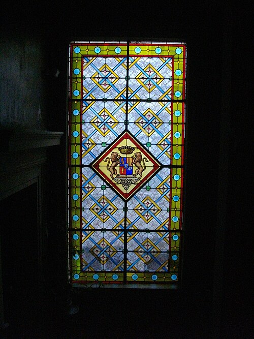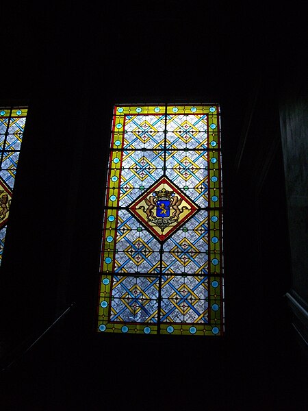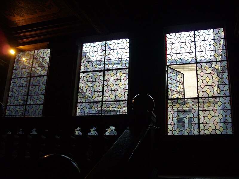 La fiche iconographique mentionne des vues générales et détaillées de la façade sur rue et de la façade intérieure, la porte d'entrée, une plaque d'identification municipale, des vues depuis le deuxième étage et au moins un vitrail. Des ressources documentaires telles que Mérimée et Structurae sont référencées pour compléter l'information.