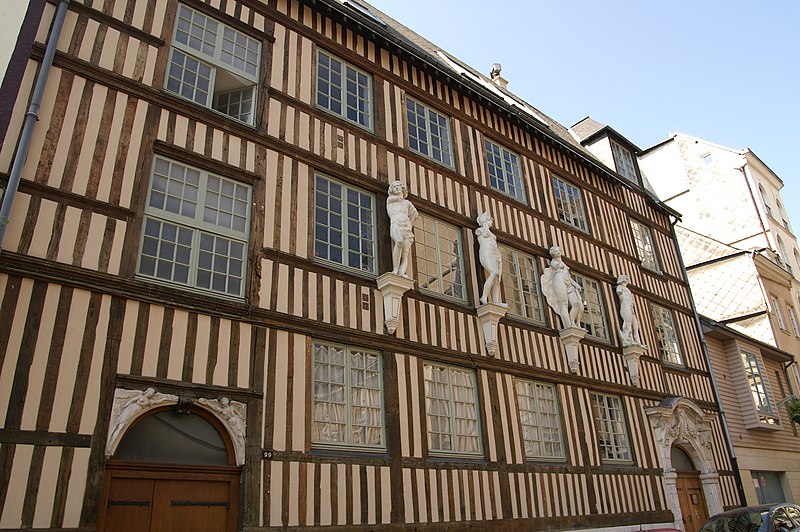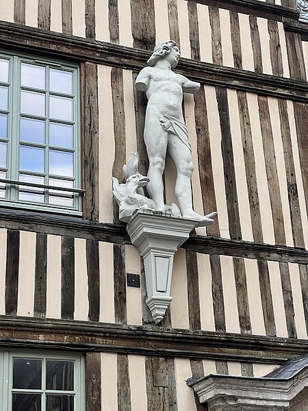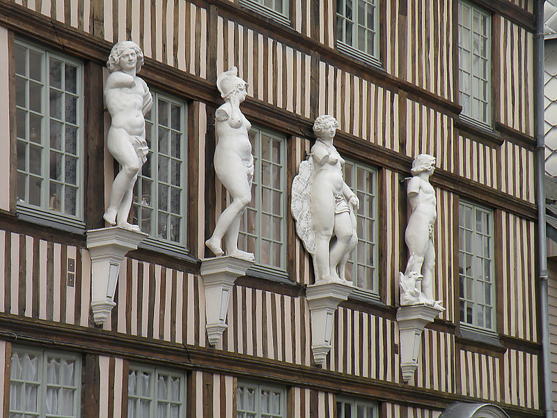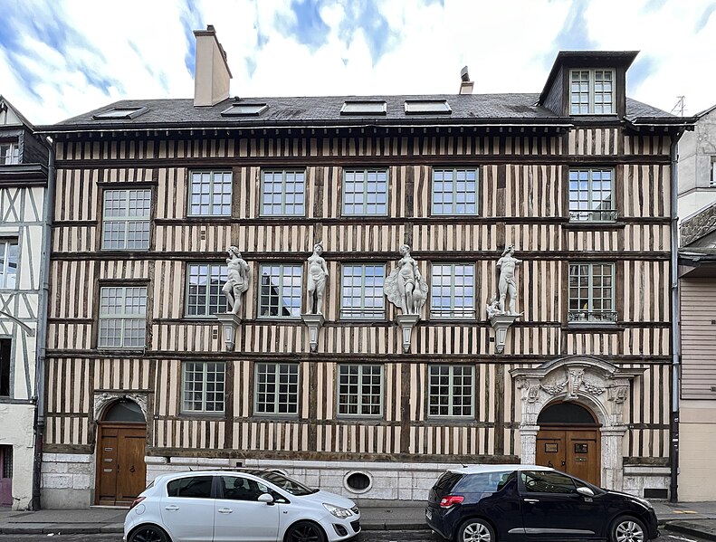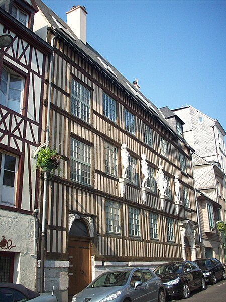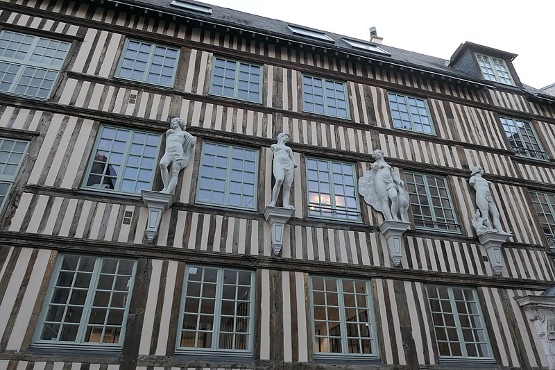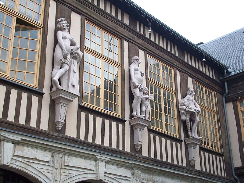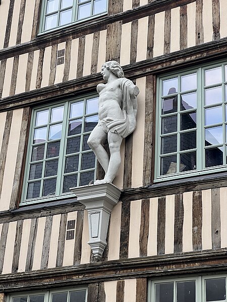 Façades sur la cour d'Etancourt avec leurs statues de l'ancien hôtel situé 73, rue du Gros-Horloge : inscription par arrêté du 28 avril 1933