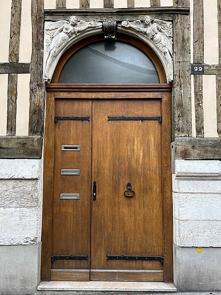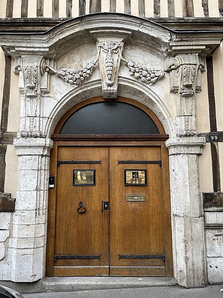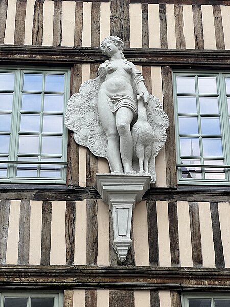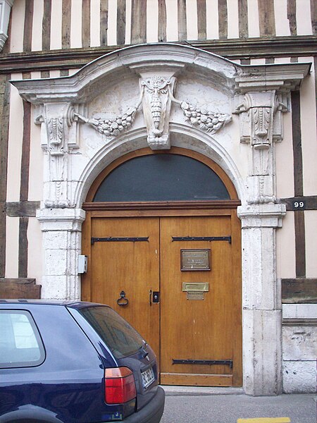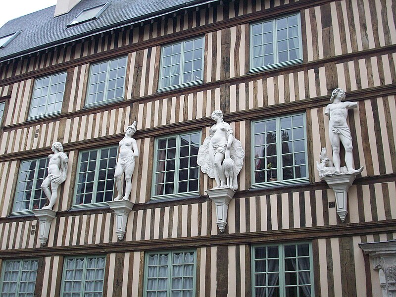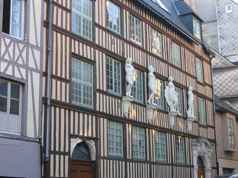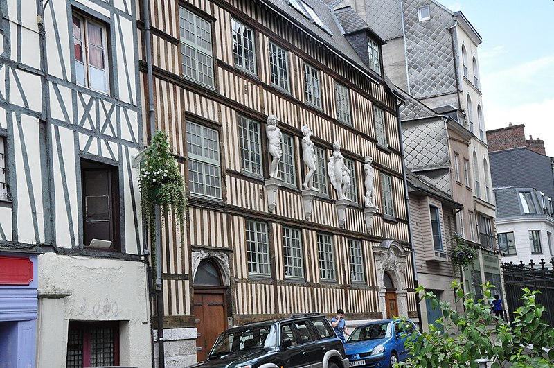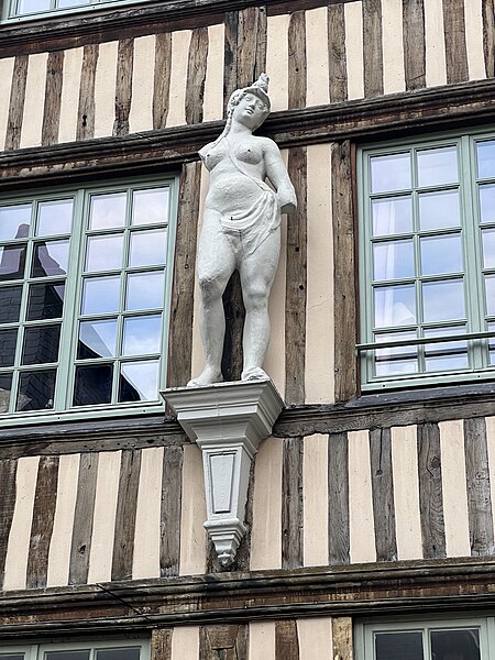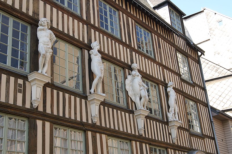 Façades sur la cour d'Etancourt avec leurs statues de l'ancien hôtel situé 73, rue du Gros-Horloge : inscription par arrêté du 28 avril 1933