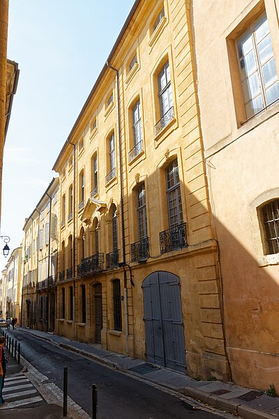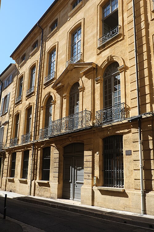 Parmi les ressources bibliographiques figurent notamment les ouvrages Évocation du vieil Aix d'André Bouyala-d'Arnaud (1964), Le Guide d'Aix-en-Provence et du pays d'Aix dirigé par Noël Coulet (1988), et Architecture et décoration du XVIe au XIXe siècle, t. 2, de Jean-Luc Massot (Édisud, 1992), ainsi que des publications locales plus récentes.