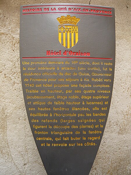 L'hôtel d'Oraison est un hôtel particulier situé à Aix-en-Provence (Bouches-du-Rhône). Son premier propriétaire connu fut Henri de Raffelis à la fin du XVIe siècle. La ville d'Aix l'acquit ensuite pour y loger le gouverneur de Provence, le duc de Guise, lors de ses séjours. Après le décès, en 1732, d'Espérit Fulque, sa maison de la rue des Trois Ormeaux fut attribuée à maître Nicolas Gilles, procureur et époux d'Anne Fulque. Mathieu Fulque concentra ses efforts sur l'aménagement de sa propre demeure aixoise, acquise le 28 septembre 1731 de messire Gaspard de Gueydan pour la somme de dix-huit mille livres, dont seize mille pour la grande maison et deux mille pour la petite maison, écurie et cellier. Le 14 mars 1735, il acheta la maison voisine de Marie Brunier pour 1 000 livres et, pour la dédommager, lui acheta une autre maison du même quartier pour 1 800 livres. Le 30 juillet 1736, il acquit une cinquième maison, faisant le coin de la rue dite des Eiguesiers, appartenant à Catherine Astoin, veuve d'Antoine Gautier, pour 950 livres. Les travaux de réalisation de l'hôtel Fulque d'Oraison, dont la façade principale donnait sur la rue du Séminaire, purent alors commencer. L'hôtel resta dans la famille Fulque jusqu'au 1er juillet 1792, date à laquelle il devint « bâtiment national » à la suite de l'émigration de ses propriétaires ; un inventaire des biens fut dressé à partir du 13 août 1792. Au XIXe siècle, il est mentionné en 1839 comme dépendant de la succession de Louis Roux et mis en vente à la folle enchère avec une mise à prix de 4 000 francs. Le texte indique également que Joseph Ramberd en fit l'acquisition en 1836 ; après son décès, la maison fut revendue en 1841 à François Thomas Bouteuil, puis en 1881 à François Eugène Carbonnel, et son épouse Anne Thérèse Adrienne Foncin en hérita en 1909. L'hôtel d'Oraison a fait l'objet d'une restauration en 2012. Il est inscrit au titre des monuments historiques depuis 1987.