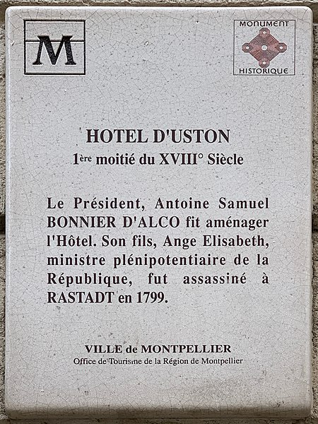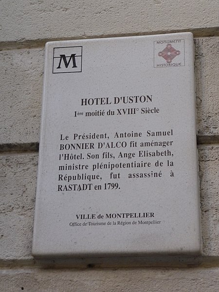 L'hôtel d'Uston est un hôtel particulier situé à Montpellier, dans le département de l'Hérault. Il a été construit sur une partie de l'hôtel de Solas après l'acquisition de celui-ci par Antoine Bonnier d'Alco. Au XVIIIe siècle, il a été aménagé par Antoine Samuel Bonnier d'Alco, président de la cour des aides de Montpellier et père d'Antoine Bonnier d'Alco. L'édifice a ensuite appartenu à la famille d'Uston de Villeréglan. Il est inscrit au titre des monuments historiques depuis 1944. Pour des informations complémentaires, on peut consulter les ressources Mérimée et Structurae ainsi que les portails consacrés à Montpellier, à l'architecture et aux monuments historiques français.