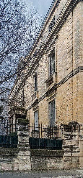 L'Hôtel Davé, situé 15 boulevard Talabot et rue Fénelon à Nîmes, est un hôtel particulier construit en pierre, implanté en retrait du boulevard et occupant toute la largeur de la parcelle avec un jardin à l'arrière. Il a été édifié pour Arthur de Roussel avant 1892. Le nom « Davé » renvoie, selon les sources, à un juge du tribunal de première instance qui a ensuite donné l'hôtel à l'Académie de Nîmes. Les façades, les toitures et la cage d'escalier ont été inscrites au titre des monuments historiques le 3 septembre 2010 par la préfecture de la région Languedoc-Roussillon. L'édifice abrite actuellement le Bridge Club Nîmois. Le bâtiment possède deux entrées, celle côté boulevard faisant office d'entrée principale, et un rez-de-chaussée surélevé ; la façade sur jardin est enduite. Un important fronton semi-circulaire orne le sommet de la travée centrale des façades sur rue et sur boulevard. L'entrée principale s'atteint par un escalier abrité par le balcon de l'étage, soutenu par des colonnes doriques. Le volume intérieur s'organise autour d'un vaste espace correspondant à la travée centrale et se prolonge jusqu'à l'escalier donnant sur le jardin, bien que des cloisons contemporaines aient rompu cet axe. L'escalier, remarquable par son ampleur, conserve une peinture rouge pompéien à motifs floraux ainsi qu'une large frise servant de soubassement. Le palier de l'étage s'ouvre par deux arcs reposant sur trois colonnes et le plafond de la cage d'escalier a gardé son décor de stuc. Au rez-de-chaussée, quatre grands salons sont aménagés autour de l'axe central menant à l'escalier. Le salon sud-est conserve sa cheminée en marbre blanc et son décor stuqué. Un couloir, probablement percé ultérieurement, a fragmenté le salon sud-ouest, mais le décor de son plafond en caissons carrés moulurés y est conservé. Le salon nord-ouest présente toujours son plafond stuqué et son sol en mosaïque. Le salon est a été totalement morcelé. À l'étage, les pièces donnant sur le boulevard ont conservé leurs cheminées en marbre ou en onyx. Les façades présentent un perron surélevé et un péristyle à colonnes de style Louis XVI.
