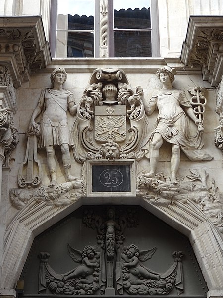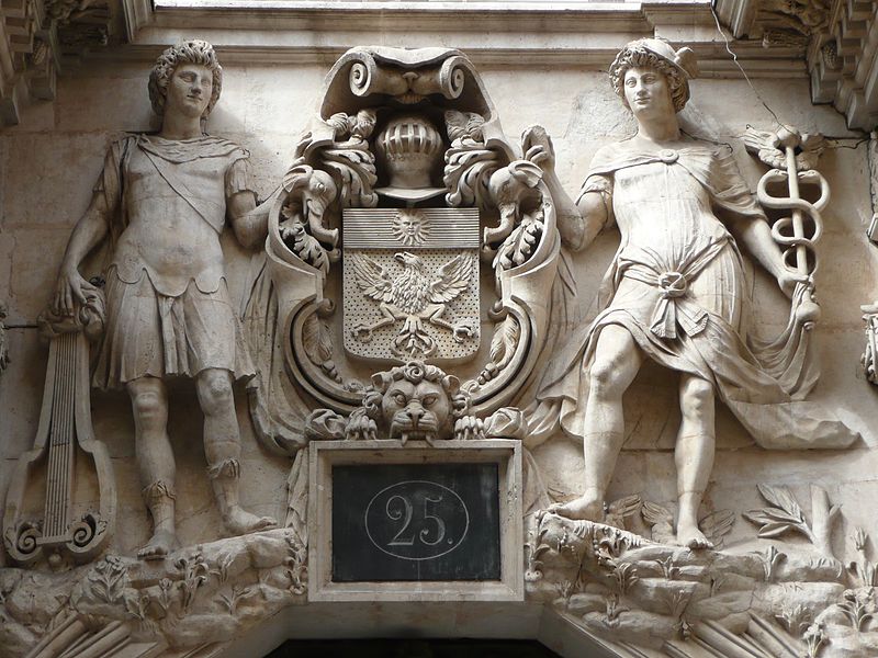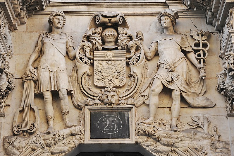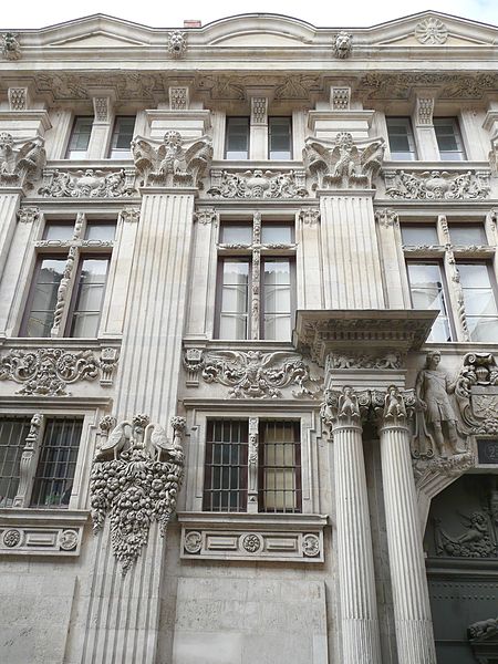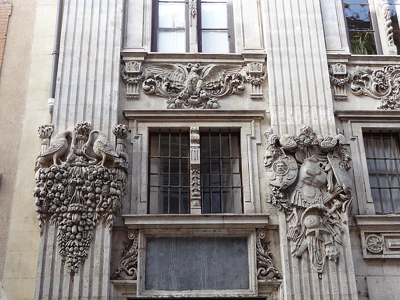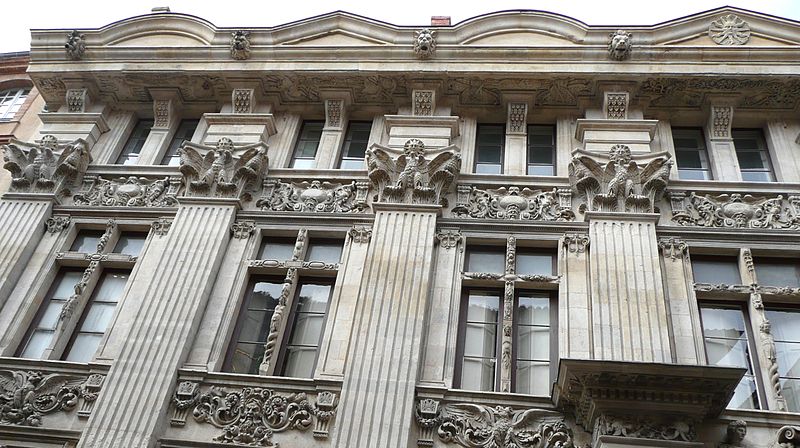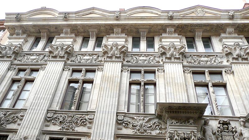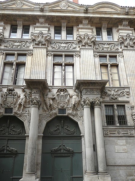 Dans la cour, Nicolas Bachelier met en œuvre une originalité dans le traitement des baies en les concevant comme de petits temples antiques : les fenêtres présentent une représentation progressive de l'ordre dorique sur les niveaux, avec triglyphes et corniches qui renforcent la monumentalité des ouvertures. La porte dite « aux Atlantes », attribuée à la campagne de Bachelier mais dont la datation fait encore l'objet de débats, s'ouvre sur une cage d'escalier à rampe droite ; cet escalier droit figure parmi les premiers exemples de ce type à Toulouse, marquant la diffusion de l'ordre dorique dans l'architecture locale. L'intérieur conserve des plafonds peints, une grande cheminée monumentale dont la partie inférieure remonte à la campagne de 1538 attribuée à Nicolas Bachelier et Antoine Lescalle, et la partie supérieure, réalisée au début du XVIIe siècle, est dominée par la figure de Pomone entourée de putti et de deux vieillards identifiés comme Vertumne. Un décor de sculptures en terre cuite provenant de la manufacture de Gaston Virebent orne également certaines pièces. Cet hôtel demeure un exemple majeur de l'adoption des formes de la Renaissance à Toulouse et de l'évolution des techniques et du décor architectural au tournant des XVIe et XVIIe siècles.