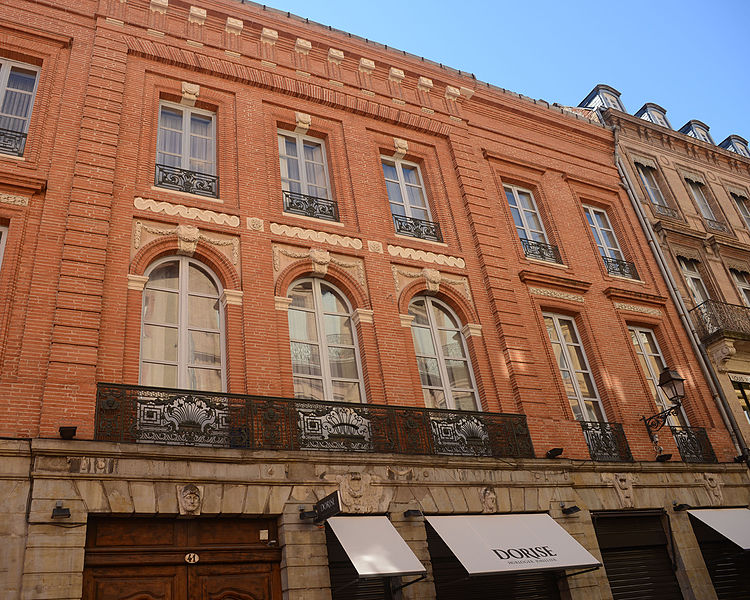 L'hôtel s'implante à l'angle des rues Croix-Baragnon et des Trois-Banquets, mais la façade sur Croix-Baragnon, visible depuis la place Saint-Étienne, est la plus soignée. Elle compte sept travées sur deux étages, strictement symétriques, les trois travées centrales formant une légère saillie. Le rez-de-chaussée en pierre de taille présente des bossages et une porte cochère décentrée ; la porte en menuiserie et son heurtoir datent du XVIIIe siècle. Les étages, construits en brique et alors blanchis d'un enduit de chaux pour imiter la pierre, montrent des ouvertures ornées d'agrafes et de décors de feuillage ; les deux larges travées centrales sont sculptées de têtes. Les trois travées centrales sont encadrées par deux pilastres colossaux doriques à bossages, reliés par une architrave et surmontés d'une frise d'ordre dorique avec triglyphes. Les garde-corps en fer forgé, au décor géométrique et feuillagé de style rocaille, ornent les fenêtres des premier et deuxième étages, tandis que la façade est couronnée d'une corniche à modillons et de gouttières en plomb décorées d'une frise de grecques.