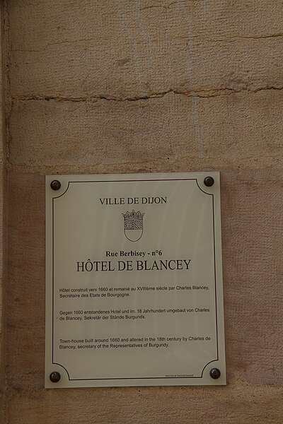 L'Hôtel de Bretagne-Blancey est un hôtel particulier situé au 6-8 rue Berbisey, dans le secteur sauvegardé de Dijon. Il est inscrit au titre des monuments historiques depuis 1978. Avant la Révolution, il était occupé par Claude-Charles Bernard de Blancey, fils d'André Bernard de Chaintré et de Marguerite de Bretagne. En 1785, Claude-Charles Bernard de Blancey vend sa demeure à Meney-Ligier, trésorier de France. La propriété revient ensuite à son fils Claude Meney (1773-1845), puis à son petit-fils Simon-Pierre-Émile Rigollier de Parcey (1795-1861), maire de Dôle et député du Jura, qui en hérite avant de la vendre en 1846 à André-Napoléon Buirette (1803-1892). Buirette cède ensuite l'hôtel à Auguste Poupon ; en 1882, ce dernier fait don au musée de six dessus de porte provenant de la demeure. À la fin du XIXe siècle, l'hôtel de Bretagne-Blancey abrite la Maison d'éducation de Mme Bourgeon. Des documents et ressources le concernant sont consultables dans la base Mérimée. Des vues de la cour et une plaque d'information sont visibles dans la galerie photographique.