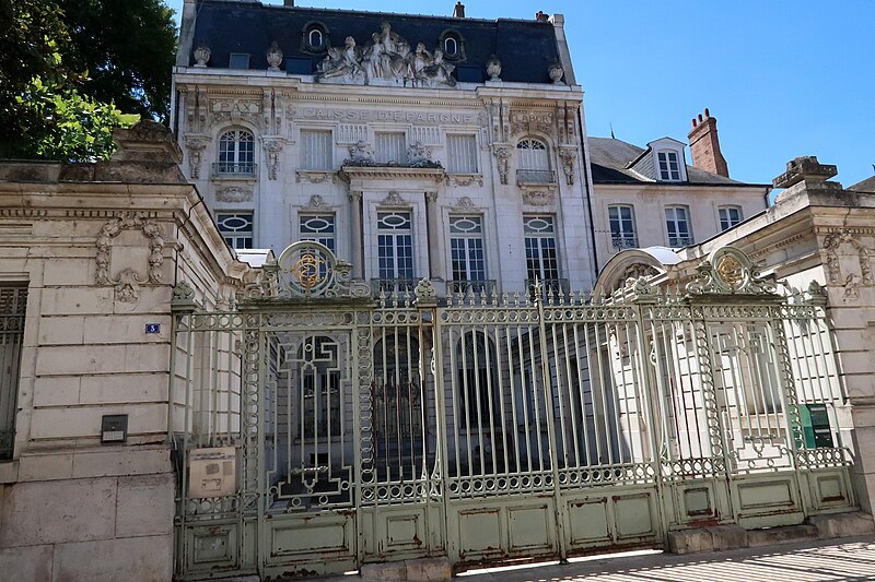 L'hôtel de la Caisse d'Épargne d'Orléans, immeuble du XXe siècle situé dans le Loiret, a été édifié entre 1910 et 1912 à l'emplacement de l'ancien hôtel de Geffrier. Implanté entre cour et jardin, il est relié à la rue par deux ailes en retour d'un seul niveau couvertes en terrasse. La façade principale affiche une ornementation ostentatoire : guirlandes, têtes de lion à la base des consoles, colonnes cannelées et mascarons au centre des linteaux ou des arcs des fenêtres. Des inscriptions sommitales indiquent la nature de l'établissement (« Caisse d'Epargne ») et évoquent les valeurs qu'il porte (« Paix » et « Travail »). Si la façade a été bien conservée, l'organisation intérieure a été profondément modifiée : seule subsiste la verrière qui couvrait la salle d'accueil du public ainsi que les arbalétriers soutenant la partie oblique du toit ; le reste du décor a disparu lors des transformations des années 1970. La façade s'inscrit dans le groupe des hôtels de Caisse d'Épargne et prolonge la continuité des hôtels particuliers, position de l'édifice qui le rappelle. Le traitement de la façade et le vocabulaire architectural révèlent un certain éclectisme du Conseil des directeurs et un choix original, tandis que la monumentalité rapproche l'ensemble de l'architecture bancaire de la fin du XIXe et du début du XXe siècle. L'édifice est inscrit au titre des monuments historiques en 2000.