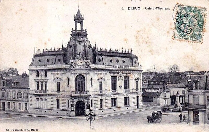 L'hôtel de la Caisse d'épargne, élevé à Dreux à la fin du XIXe siècle, a été construit entre 1892 et 1894 d'après les plans de l'architecte Vidière pour abriter simultanément les services municipaux et la Caisse d'épargne. Conçu en pierre pour ses façades principales et en brique pour les façades arrière, l'édifice présente un style éclectique d'une grande richesse décorative. L'accès se fait à l'angle des deux ailes par une rotonde couronnée d'un dôme monumental et d'un lanternon, traitement qui signale l'édifice dans la ville et affirme son statut public, renforcé par l'installation de la mairie. L'intérieur adopte un vocabulaire classique : des colonnes de marbre soutiennent la coupole de l'escalier et des pilastres rythment les murs du palier du premier étage; la cheminée de la salle des directeurs porte une sculpture de la ruche, symbole des caisses d'épargne. Les lettres R.F., visibles sur la façade et dans le décor de la coupole, rappellent la destination municipale initiale. L'hôtel de Dreux est l'un des deux établissements de la région Centre à posséder une rotonde d'angle — l'autre se trouvant à Châteauroux — et figure parmi les rares à avoir conservé un ensemble ornemental quasiment complet; le décor de la salle des mariages a été réalisé par Michon en 1899. Il se situe aux nos 22 et 24 de la place Métézeau, au sud-est du centre-ville de Dreux, dans le nord du département d'Eure-et-Loir. La Caisse d'épargne de Dreux, dont les statuts furent arrêtés par le conseil municipal en 1835, fut autorisée par ordonnance royale en 1836. La cérémonie de pose de la première pierre a eu lieu le 24 avril 1893, la pierre ayant été posée à 11 h par Louis Terrier; l'inauguration, en 1894, fut accompagnée d'un grand concours musical placé sous la présidence d'honneur de Louis Terrier, avec un jury présidé par le compositeur Émile Pessard. Les services de la Caisse s'installèrent au rez-de-chaussée en 1895; à partir de 1897, la banque loua le premier étage à la Ville, qui y installa la mairie jusqu'en 1951. À la suite de la fermeture annoncée de l'agence, la transformation du bâtiment fut envisagée dès 2009; l'agence ferma en 2010 et la Ville racheta l'édifice le 23 décembre 2011. Des travaux de modernisation furent engagés et un bail d'environ vingt mois fut consenti au rez-de-chaussée à une agence de la Banque populaire, mais les locaux restèrent ensuite longtemps inoccupés. En mai 2017, une tempête fit chuter les bras de l'une des statues de la façade ; les fragments furent recueillis par Damien Chantrenne et Axelle Marin et conservés dans les réserves du musée d'Art et d'Histoire de Dreux en attente de restauration. Le bâtiment est inscrit au titre des monuments historiques par arrêté du 26 septembre 2000, en tant que propriété d'un organisme professionnel.