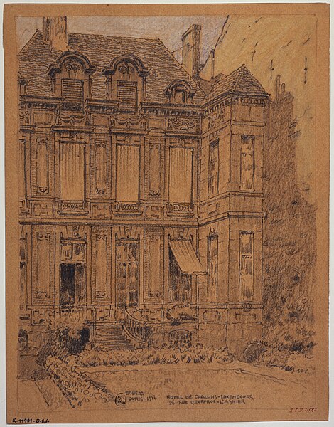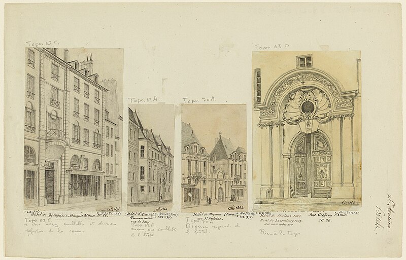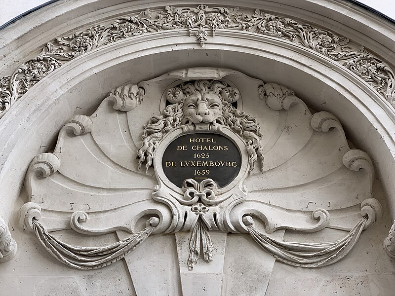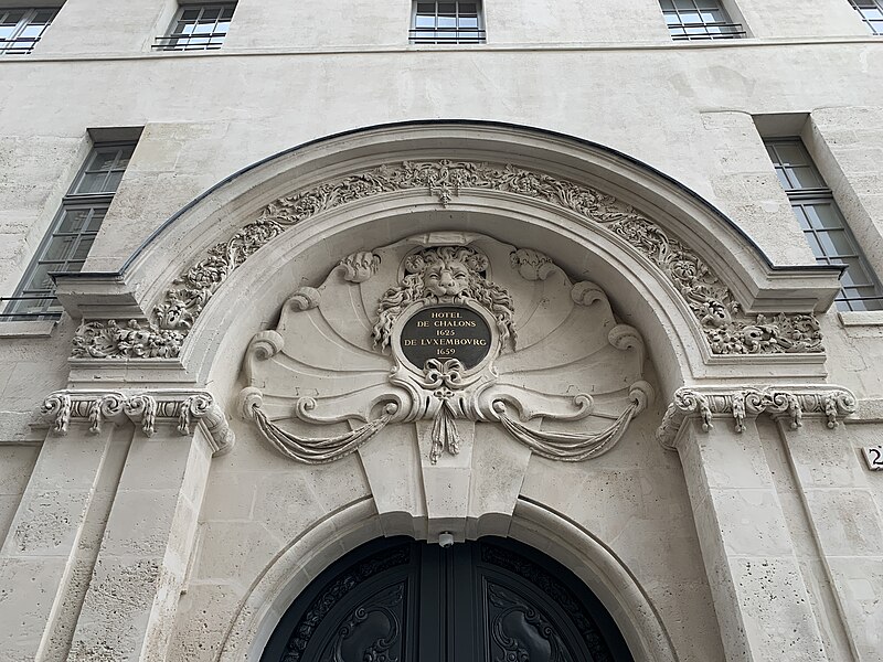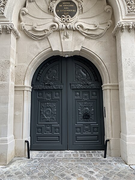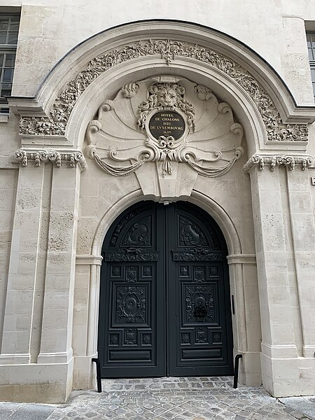 Parmi les éléments remarquables figurent le portail sur la rue avec son tympan (la graphie « Chalon » sans « s » y est indiquée), la façade principale sur cour et une cheminée en faïence du XVIIe siècle. Le site est desservi par la station de métro Saint‑Paul.