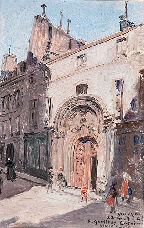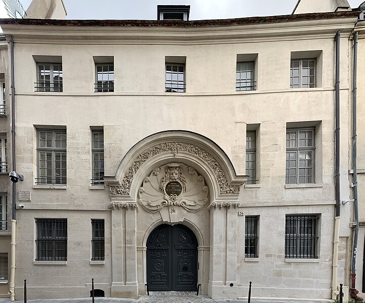 La bibliographie citée comprend notamment Jean‑Marie Pérouse de Montclos (Le Guide du Patrimoine: Paris), Michel Poisson (Paris Monuments) et le Bulletin de l’Association pour la sauvegarde et la mise en valeur du vieux‑Paris (n°52, 1982).