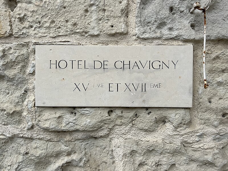 L'hôtel de Chavigny, hôtel particulier à Chinon (Indre-et-Loire), forme un ensemble clos de plan carré accessible par une porte fortifiée du XVe siècle. La courtine et le chemin de ronde qui dominent cette entrée se prolongent de part et d'autre et présentent des mâchicoulis ainsi qu'un crénelage décoratif. À l'angle nord-est, un bâtiment perpendiculaire a son pignon en continuité avec la courtine. Une tourelle d'angle semble appartenir au XIXe siècle. Au nord du porche se trouve une petite tourelle d'escalier polygonale, surmontée d'une lucarne de style Renaissance aux pilastres plats et au fronton triangulaire. Les façades donnant sur la cour intérieure ont été remaniées au XVIIIe siècle. Le monument est inscrit au titre des monuments historiques depuis le 29 décembre 1983. Des ressources en ligne, notamment la base Mérimée et les portails consacrés à l'architecture, à l'urbanisme, à l'Indre-et-Loire et aux monuments historiques, permettent d'approfondir son étude.