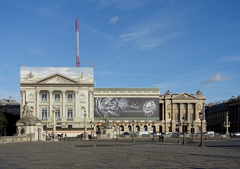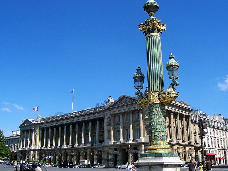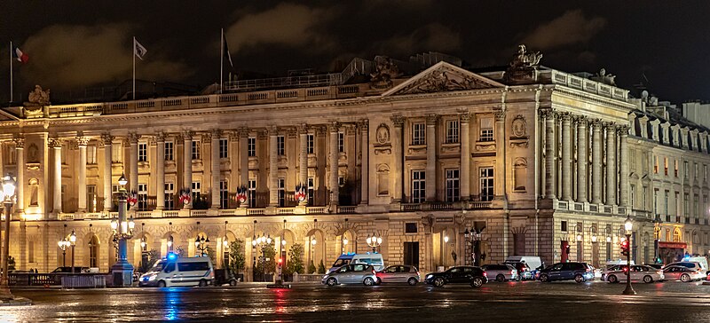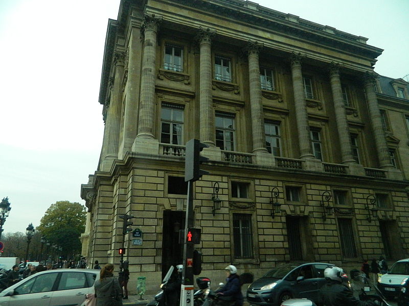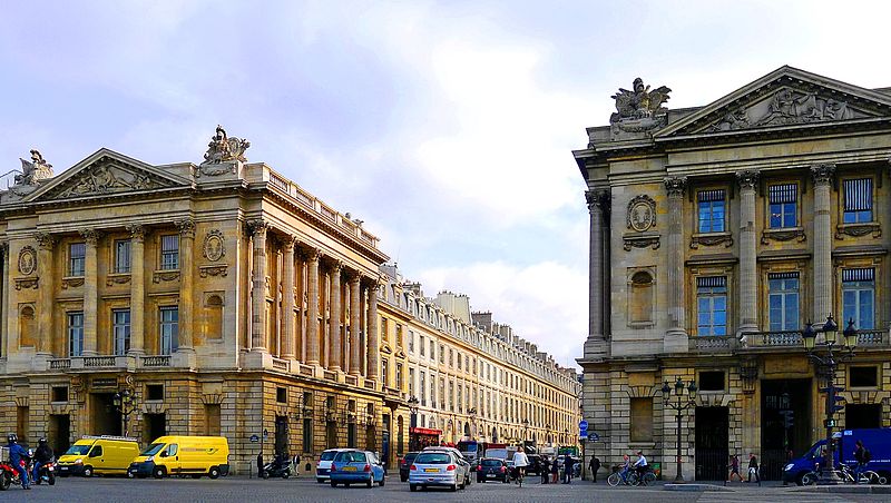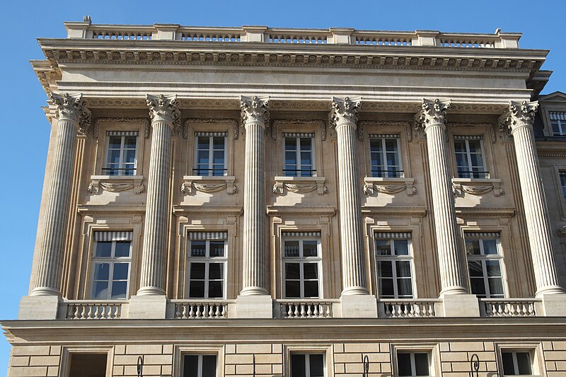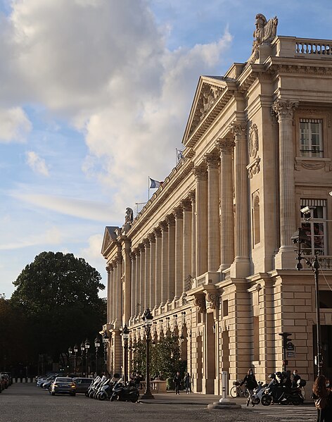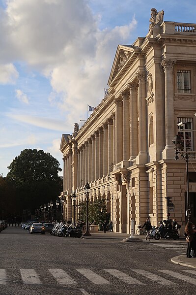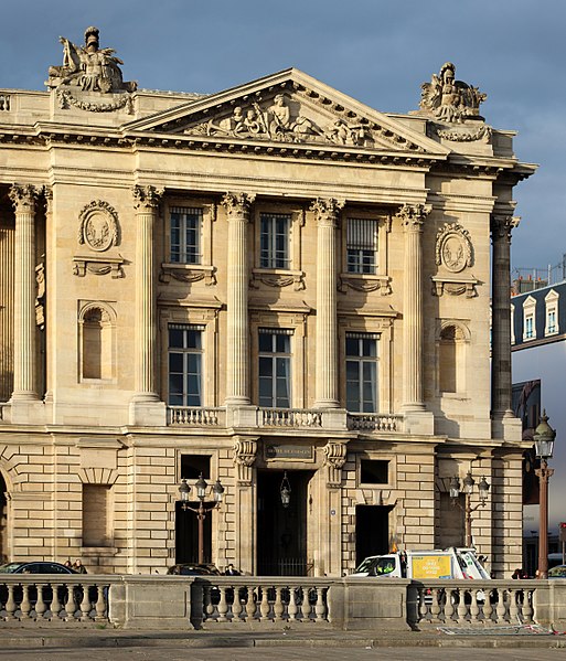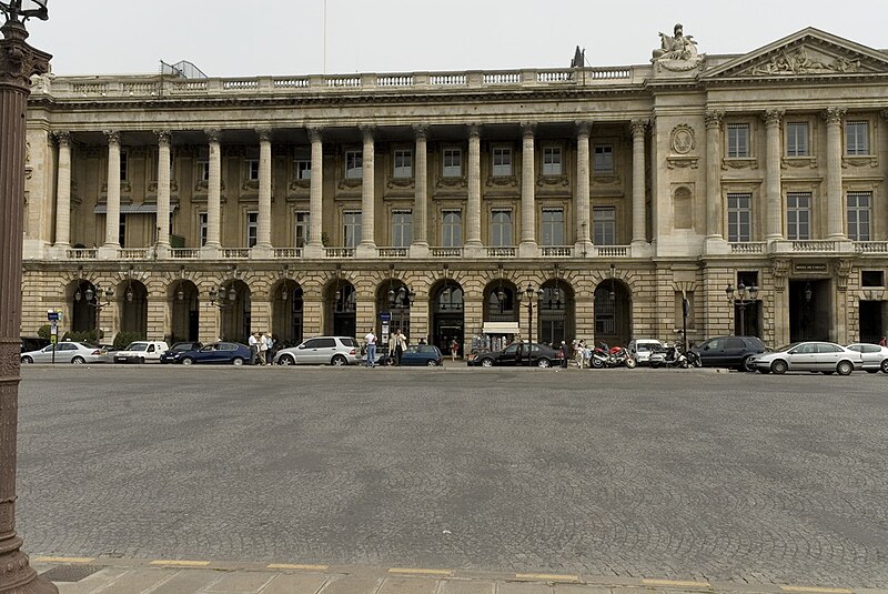 Sur le plan architectural, l'hôtel forme, avec l'hôtel de Crillon, un pavillon d'angle à l'extrémité d'un portique de douze colonnes d'ordre corinthien. Sa façade comporte trois travées et un portique où quatre colonnes portent un entablement couronné d'un fronton ; les trumeaux extérieurs présentent des niches inoccupées, des médaillons et des trophées sculptés. L'étage noble est souligné par une balustrade et le second étage décoré de guirlandes sous les appuis de fenêtre. Le fronton porte une allégorie intitulée Le Progrès du Commerce : une femme couronnée de perles, de corail et de fruits, appuyée sur un ballot, tenant un caducée, entourée d'objets maritimes et commerciaux comme jarres, ballots, ancre et gouvernail. Une réplique des deux corps de bâtiment de la place de la Concorde a été réalisée à Philadelphie par Horace Trumbauer et Julian Abele ; l'un de ces bâtiments, copie de l'hôtel de Coislin, abrite la Free Library of Philadelphia, tandis que l'autre reproduit le pendant qu'occupe l'hôtel de la Marine.