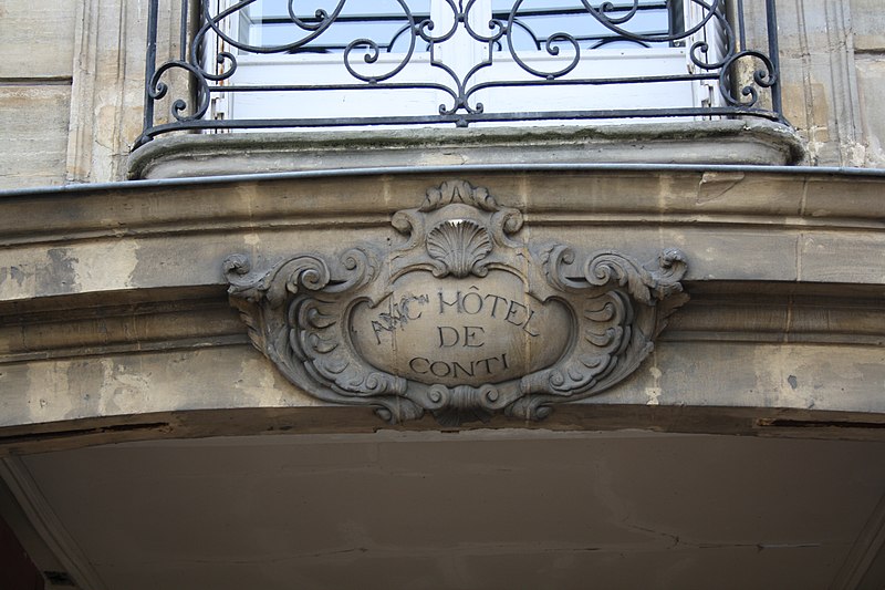 L'hôtel, acheté en 1680 par le prince de Conti, figure sur le plan de Caron. Il comprenait de très vastes écuries et remises, remplacées au début du XIXe siècle par des immeubles. Hérité en 1752 par la duchesse d'Orléans, il a été vendu en 1754 à Georges Binet, valet de chambre du dauphin. Celui-ci le fit reconstruire entre 1754 et 1758. D'autres aménagements, notamment les escaliers et la façade du bâtiment sur rue, ont été réalisés au milieu du XIXe siècle.
