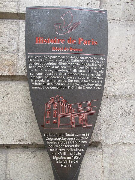 L'hôtel de Donon est un hôtel particulier situé aux nos 8 rue Elzévir et 9 rue Payenne, dans le 3e arrondissement de Paris, en Île-de-France ; il est desservi par la station de métro Saint-Paul. Construit à partir de 1575 pour Médéric de Donon, seigneur de Châtres-en-Brie et de Loribeau, conseiller du roi et contrôleur général de ses bâtiments, il occupe des terrains au nord de l'enceinte de Philippe-Auguste, inclus dans l'enceinte de Charles V depuis le XIVe siècle. Les parcelles étaient issues du lotissement entrepris dès 1545 par les religieux de Sainte-Catherine-des-Écoliers, le chemin devenu successivement rue de Diane, rue des Trois Pavillons puis rue Elzévir. L'architecte reste inconnu ; Médéric de Donon a pu en être partiellement l'auteur et l'édifice présente des affinités avec la maison que fit bâtir Philibert Delorme dans le Marais ; Jean Bullant, proche de Donon et collaborateur de Delorme, est également cité comme possible maître d'œuvre. Médéric de Donon, proche partisan du roi Henri III, fut emprisonné en 1588 par la Ligue et libéré en juillet 1593 ; il mourut dans l'hôtel en 1594. Transmis à son fils Jean, puis à un neveu qui s'en sépara en 1636, l'hôtel fut acheté en 1640 par le financier Jean-Louis Le Mairat ; ses descendants en furent propriétaires jusqu'en 1798, date à laquelle il passa à la famille Hénault de Tourneville à la suite du mariage de Françoise Le Mairat avec Étienne Hénault de Tourneville en 1776, puis, par alliance, à la famille Bourgeois. À partir de 1839, l'hôtel fut transformé en immeuble de rapport et à usage commercial, avec des remaniements importants : galeries vitrées en saillie au rez-de-chaussée côté cour, encorbellements aux angles du premier étage et, dans les années 1930, l'installation d'un vaste garage couvrant le jardin. Acquis par la ville de Paris en 1974 auprès des descendants Bourgeois, l'édifice, alors en mauvais état, fut choisi à partir de 1981 pour accueillir les collections du couple Cognacq-Jay, jusque-là conservées au 25 boulevard des Capucines ; la restauration visant à retrouver l'état originel commença en 1988, les collections y furent installées en 1990 et le musée ouvrit au public la même année. L'hôtel est protégé au titre des monuments historiques : inscrit par arrêté du 6 août 1975 puis classé par arrêté du 28 décembre 1984. Architectoniquement, le dessin général, avec de hautes toitures, rappelle les réalisations de la fin du XVIe siècle dans le Marais et évoque, par son unité et son goût, la vie raffinée du Siècle des Lumières ; le grand comble, lieu d'expositions, évoque la coque renversée d'un navire. Le plan est régulier : les bâtiments entourent une cour rectangulaire, le corps de logis principal s'établissant entre cour et jardin et relié au bâtiment sur rue par deux ailes, la branche sud ayant probablement abrité remises et écuries et la branche nord une galerie. Deux petits pavillons latéraux s'avancent côté cour et côté jardin. La structure caractéristique des hôtels du Marais de l'époque comprend deux niveaux de caves, dont un demi-sous-sol pour les cuisines et la salle du commun, surmontés de deux étages de même hauteur, le rez-de-chaussée haut pour les appartements de réception et l'étage carré coiffé d'un haut comble. L'élégance tient au rythme des ouvertures — demi-croisée, croisée, croisée, demi-croisée — et à des effets de composition : côté cour, deux lucarnes réunies sous un même fronton créent un effet pyramidal, tandis que côté jardin seules les croisées pleines sont surmontées de lucarnes. L'ornementation reste sobre : consoles non sculptées, simples moulures aux lucarnes et aux rampants de frontons. Les pavillons paraissent relever d'un ajout ou d'une surélévation, et les transformations des XVIIe et XVIIIe siècles rendent incertaine la localisation de l'entrée principale d'origine ; une porte au rez-de-chaussée du pavillon nord a probablement donné accès à l'escalier desservant l'appartement, les communs et le jardin. L'escalier actuel, de type "à vue" avec rampe en fer forgé, date de la fin du XVIIe siècle selon ses caractéristiques et des comparaisons avec d'autres escaliers du Marais ; sa modification entraîna des transformations symétriques des pavillons et la probable surélévation des ailes, attestée par des traces d'ancienne couverture sur l'aile nord retrouvées lors de la restauration. Les fenêtres des galeries latérales sont dépourvues de meneaux, contrairement à celles du grand corps de logis, et la façade sur rue, avec son portail surmonté d'un fronton orné d'une coquille, relève d'une campagne de travaux plus tardive, vraisemblablement de la fin du XVIIe siècle ; vers 1710, un accès direct au jardin depuis l'appartement de réception aurait été aménagé par l'ouverture d'une porte-fenêtre donnant sur un perron, comme l'indique le plan de Paris de Jaillot (1774). Quelques décors intérieurs subsistent : des plafonds à poutres et solives peintes en imitation de marqueterie, ornés de rosaces de feuillages, se conservent dans la chambre basse (salle IV) et dans le pavillon nord donnant sur le jardin (salle II), tandis que des boiseries blanches et or datent de transformations du début du XVIIe siècle et ornent ce même pavillon ainsi que la grande salle du rez-de-chaussée (salle III).
