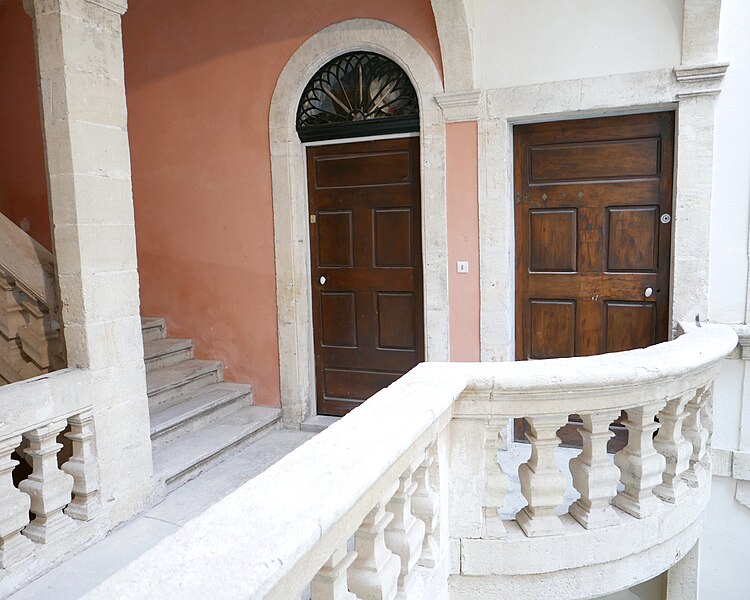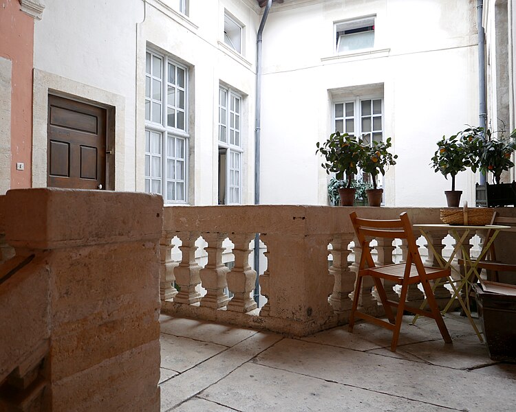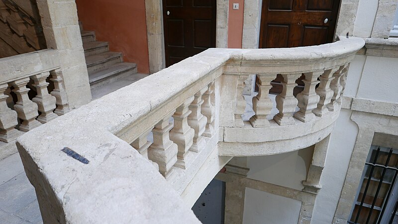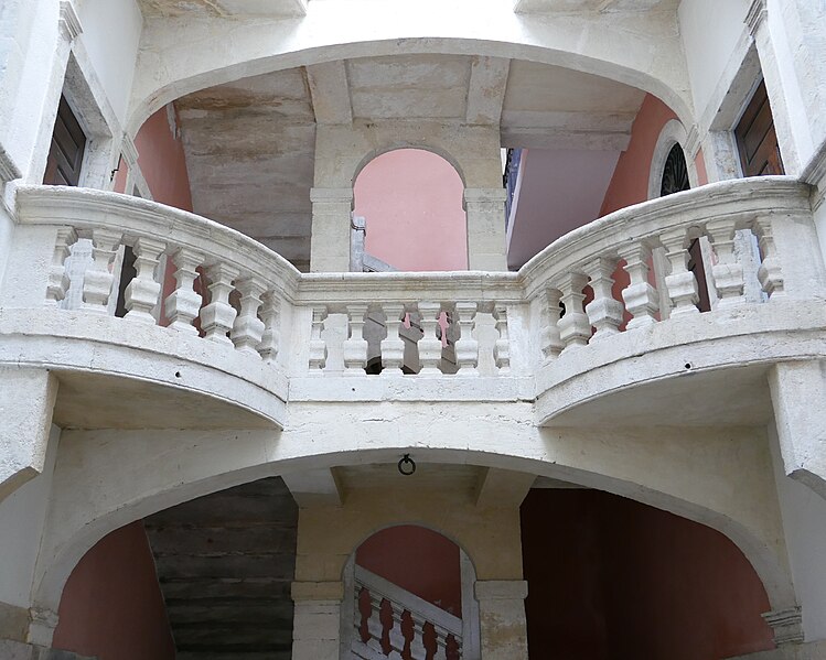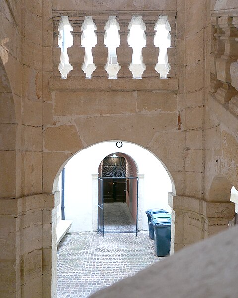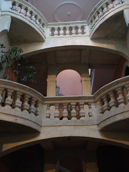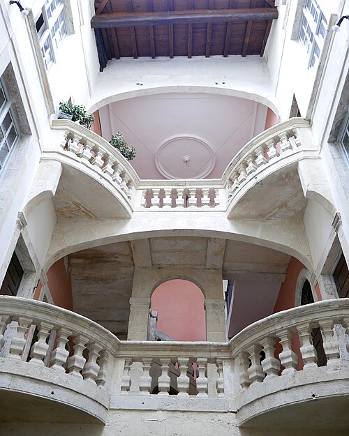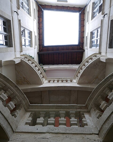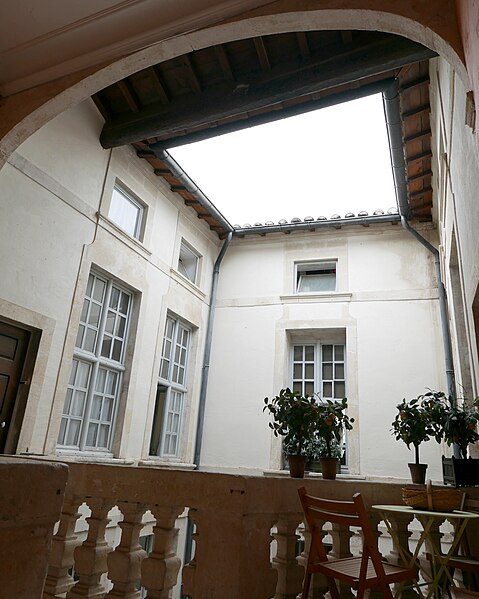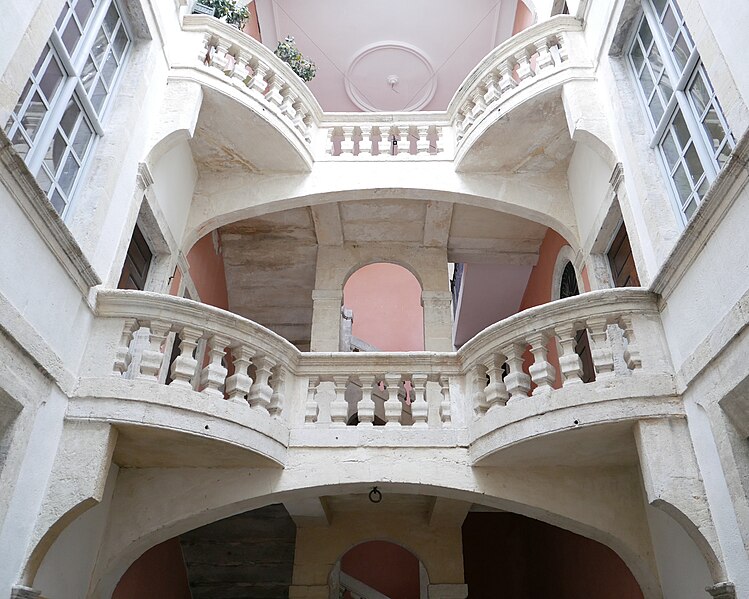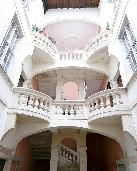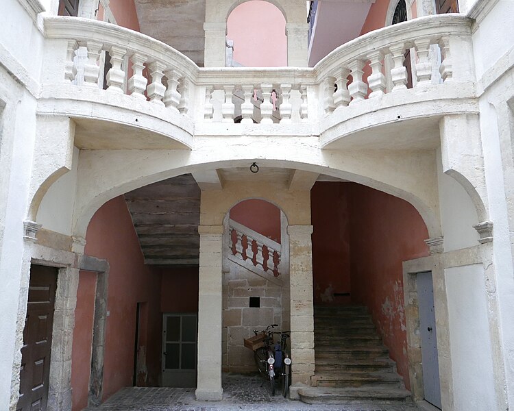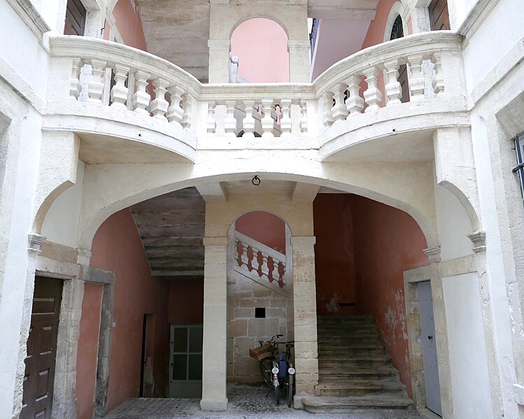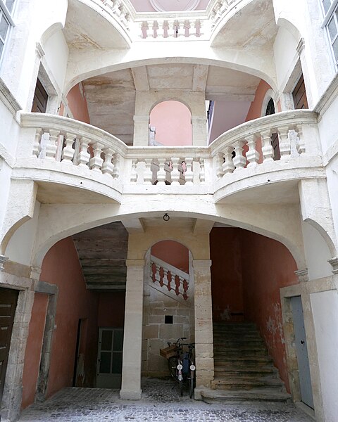 L'Hôtel de Fontfroide, hôtel particulier situé 14 rue de l'Aspic dans l'ancien quartier commerçant des Garrigues à Nîmes (Gard, Languedoc-Roussillon), est inscrit au titre des monuments historiques depuis 1949. Il est surtout connu pour son remarquable escalier Louis XIII, ouvert sur une cour d'honneur. Cet escalier, installé dans une cour intérieure, est construit autour d'un noyau formé de quatre piles reliées par des arcs plein cintre ou rampants et dessert deux étages. Les paliers sont portés par des arcs d'une seule portée reliant une paroi à l'autre de la cour ; à chaque étage, ils avancent en quart de rond à leurs extrémités pour desservir deux portes de chaque côté. Les porte-à-faux ainsi formés reposent sur des consoles et les balustres sont de section carrée. L'escalier est probablement l'œuvre de Jacques Cubizol, l'un des maîtres d'œuvre de l'hôtel de ville. L'édifice a été modifié en 1670 pour Pierre de Fontfroide, contrôleur des finances ; en 1695, Jacques Mourier, marchand de soie, l'acheta alors très abîmé et dut reculer et refaire la façade pour des raisons d'alignement. Si la façade extérieure demeure d'aspect ordinaire, elle met en valeur l'escalier central à noyau éclaté et ses balustres en pierre. La documentation disponible cite notamment Etienne Marie (Nîmes, 2009) et les Guides Bleus (Languedoc-Roussillon, 1988), et des notices sont consultables dans la base Mérimée et sur le site de l'office de tourisme de Nîmes.