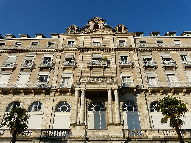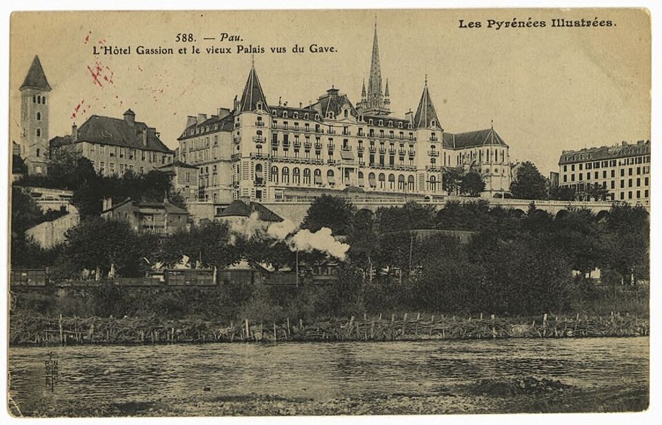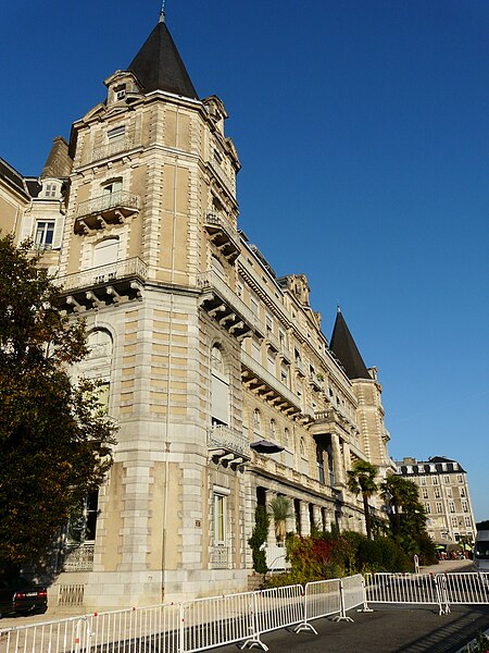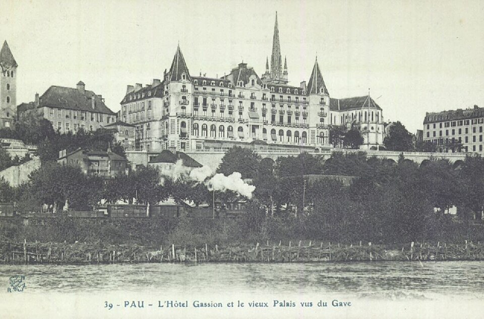 Au XVIIe siècle la famille Gassion fit édifier un hôtel près du château royal. À la Révolution l'édifice fut mis sous séquestre et ses sous-sols servirent à enfermer des suspects. En 1824 le département l'acheta pour y installer une prison modèle. Entre 1867 et 1872, Jean Lafourcade-Camarau acquit le bâtiment et le transforma en palace de grand luxe sous la direction de l'architecte Jean Marcelin Sylvestre Dumoulou. L'établissement accueillit une clientèle internationale fortunée et l'activité hôtelière se poursuivit jusqu'en 1928. L'intérieur réunissait salles de bal et de concert, salons de jeu et de lecture, vingt salons de famille et quelque deux cent quarante chambres de maîtres desservies par un ascenseur hydraulique, l'ensemble étant pourvu d'électricité et de téléphone. L'hôtel était alimenté en électricité grâce à une turbine hydro‑électrique installée sur un bras du gave. Seuls subsistent aujourd'hui les grands salons du cercle anglais : leurs arcades prennent naissance au‑dessus d'un lambris d'appui et sont encadrées de fins pilastres se prolongeant en un entablement orné d'une agraphe sculptée d'une tête féminine, complété par un cartouche à guirlande. Les portes conservent un entablement à talon renversé surmonté d'un gros médaillon peint représentant un paysage, et les plafonds présentent un décor mouluré dont les larges panneaux vides étaient à l'origine peints comme les panneaux muraux. L'extérieur forme un quadrilatère : des bâtiments à quatre étages enserrent une cour intérieure desservie par deux accès, l'un pour le service et l'autre d'honneur aboutissant à un grand hall. La façade principale s'ouvre sur la chaîne des Pyrénées ; un avant-corps central en légère saillie s'appuie sur un corps en longueur et est cantonné de tours octogonales en demi hors‑oeuvre. Le grand balcon central du premier étage, à balustres, repose sur un groupe de colonnes géminées. L'hôtel a reçu des hôtes prestigieux de la haute société internationale. Après des difficultés financières et l'abandon de l'activité hôtelière, la bâtisse a été transformée en copropriété privée et aménagée en appartements. Elle est aujourd'hui occupée par 55 appartements, 13 chambres de bonnes, 5 garages et 45 caves. L'édifice est inscrit au titre des monuments historiques pour ses façades et toitures ainsi que pour les décors des salons du cercle anglais.