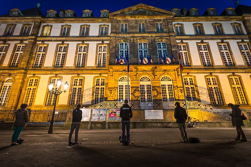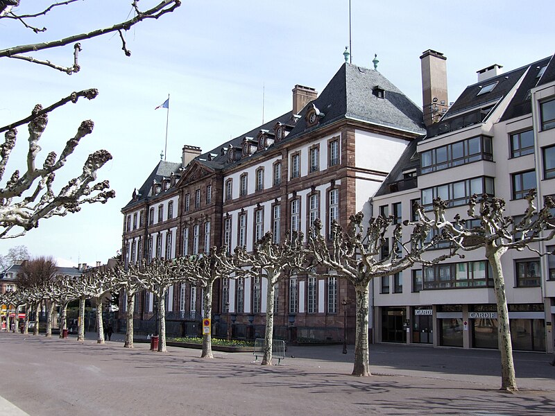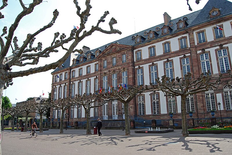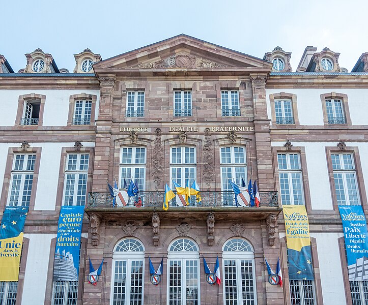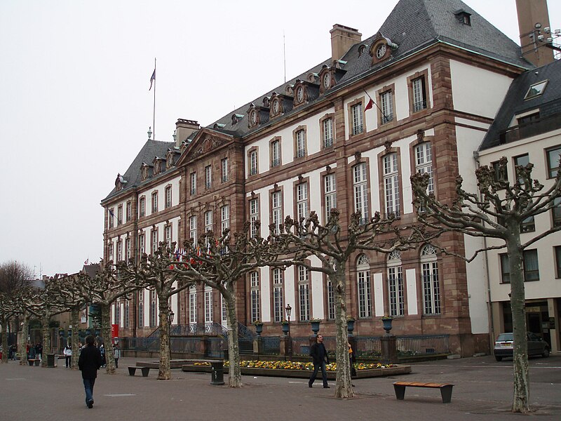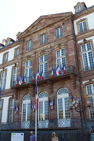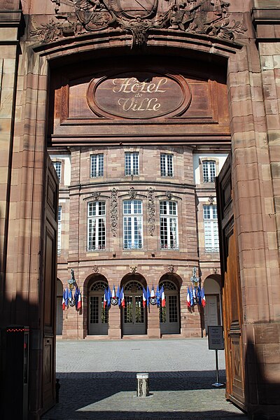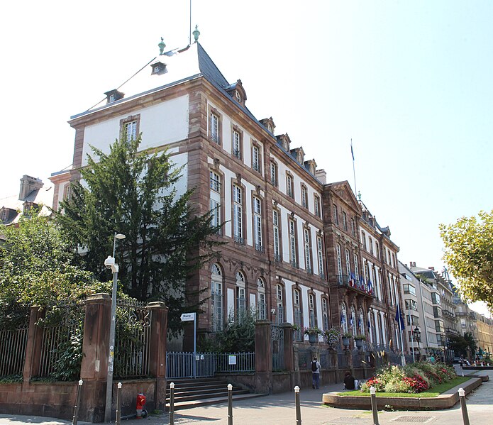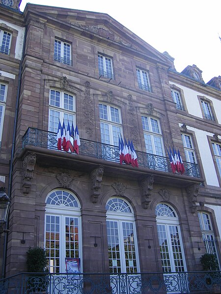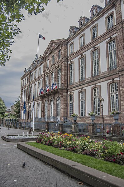 L'hôtel de Hanau est un monument historique situé place Broglie à Strasbourg, dans le Bas-Rhin ; son entrée principale se trouve au n°9 rue Brulée et sa façade arrière donne sur la place Broglie. Depuis l'époque moderne il sert de siège pour les fonctions municipales : il accueille notamment le service du protocole, des bureaux d'élus, une mairie de quartier et l'Agence de développement et d'urbanisme de l'agglomération strasbourgeoise (ADEUS). La plupart des services administratifs ont cependant été installés, depuis 1976, dans le centre administratif de la place de l'Étoile, tandis que l'hôtel de Hanau continue d'être utilisé pour les mariages et les réceptions officielles. Dès le XIIIe siècle la famille des Ochsenstein possédait un hôtel sur l'emplacement du bâtiment actuel ; en 1573 le comte Philippe de Hanau devint propriétaire. Régnier III de Hanau-Lichtenberg fit entreprendre la construction d'un nouvel hôtel entre cour et promenade à partir de 1728 ; l'édifice fut réalisé de 1731 à 1736 par Joseph Massol, architecte de l'évêché et du Grand Chapitre, d'après des plans de Robert de Cotte. Régnier III mourut en 1736 sans descendants mâles et ses biens revinrent à son gendre de la famille de Hesse-Darmstadt. En 1789 le bâtiment fut confisqué et rebaptisé « Maison de Dagobert » par la municipalité révolutionnaire. Avant la Révolution, le Neue Bau place Gutenberg occupait la fonction d'hôtel de ville, puis la municipalité s'installa au palais Rohan place du Château ; en 1805, lors du passage de Napoléon à Strasbourg, la municipalité emménagea à l'hôtel de Hanau qui devint ainsi l'hôtel de ville. Classé au titre des monuments historiques depuis 1921, l'édifice a fait l'objet d'une rénovation engagée à partir de 2016, dont le coût a été estimé à 3,8 millions d'euros. De style Régence, l'hôtel présente un plan en fer à cheval et une entrée monumentale côté rue Brulée ; la façade du logis principal et le portail sont ornés de trophées et de mascarons. La façade arrière, sur la place Broglie, s'ouvre par une alternance de baies cintrées, en arc segmentaire et rectangulaires. Le décor intérieur, partiellement conservé, est complété par des pièces de mobilier contemporaines de l'hôtel.