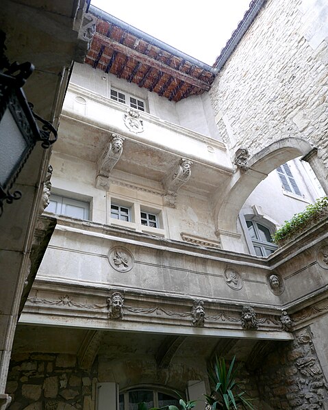 L'hôtel de l'Académie est un hôtel particulier situé 16 rue Dorée à Nîmes, dans le département du Gard en région Occitanie. Il est inscrit au titre des monuments historiques depuis 1940. La première mention de l'édifice date de 1596. Il fut la demeure de Gaillard Guiran (1600-1680), magistrat et fin lettré, dont la devise « NE QUID NIMIS » (rien de trop) reflète l'idéal de mesure des humanistes. En 1919, l'immeuble est vendu au siège de l'Académie de Nîmes, société savante fondée en 1682 par privilège du roi et déclarée d'utilité publique en 1871. Sur le plan architectural, la décoration s'inspire de la Renaissance : le portail présente un fronton brisé soutenu par deux pilastres ioniques et la cour intérieure est ornée de trophées d'armes, de mascarons, de têtes de lion et de profils de soldats casqués, avec un rez-de-chaussée caractéristique et un puits.