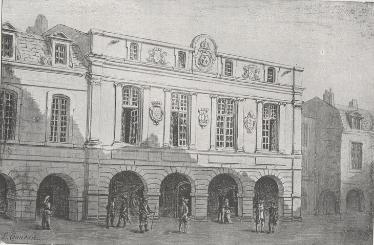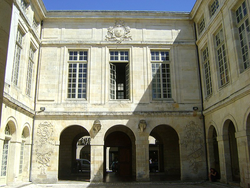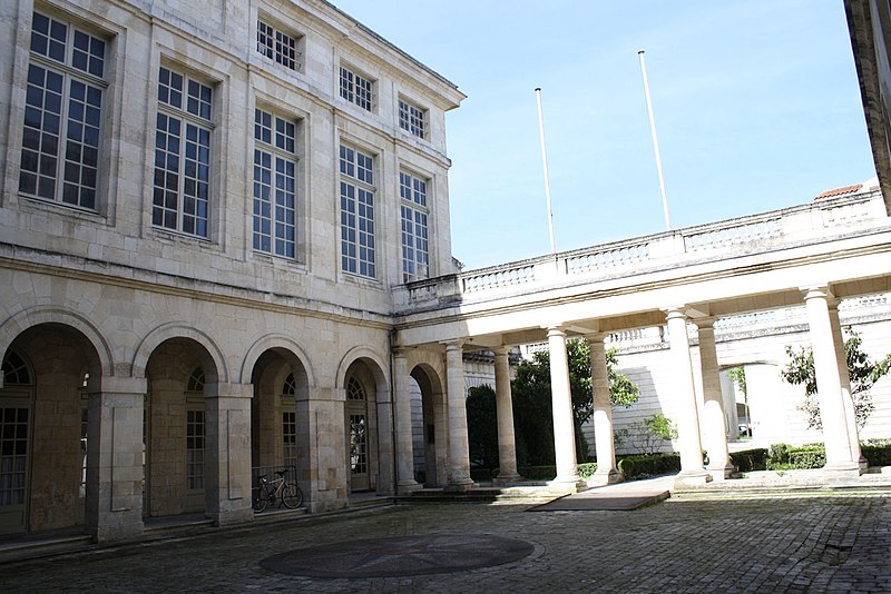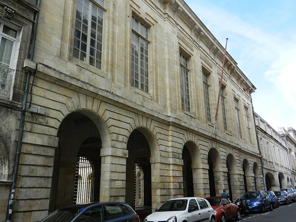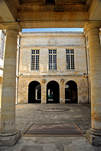 L'Hôtel de la Bourse, aujourd'hui abritant le tribunal de commerce, est un hôtel particulier du XVIIIe siècle situé rue du Palais et rue Admyrault à La Rochelle (Charente-Maritime). Le bâtiment présente un plan rectangulaire. Côté rue du Palais se trouvent une galerie et un vestibule, surmontés par la salle des fêtes. Derrière, une cour centrale est bordée d'ailes de part et d'autre et fermée au fond par un portique à jour qui relie ces ailes. Derrière ce portique s'ouvre une seconde cour, séparée de la rue Admyrault par un mur percé en son centre d'un portail monumental à colonnes doriques. La façade sur la rue du Palais présente un rez-de-chaussée formé de cinq arcades et un premier étage très élevé ouvert par cinq fenêtres à crossettes. Un entablement, reposant sur de hautes consoles cannelées, couronne cet étage ; autour de la cour centrale, le premier étage est surmonté d'un attique. Le portique qui sépare les deux cours est surmonté d'une terrasse à balustres. À l'intérieur, la grande salle donnant sur la rue du Palais est ornée de pilastres ioniques supportant un entablement à frise peinte ; les dessus de portes figurent des paysages allégoriques. Avant cette construction, la bourse se tenait en plein air, au canton des Flamands. Une juridiction consulaire élevée en 1716 par l'architecte Denis fut détruite par un incendie. Les négociants décidèrent alors d'édifier un ensemble regroupant bourse, juridiction consulaire et chambre de commerce. Les plans de l'architecte Matthieu Hue furent adoptés en 1760 et les entrepreneurs Jean et Henri Tourneur en assurèrent l'exécution. Le gros-œuvre était achevé en 1764, les aménagements intérieurs en 1765 et la chapelle en 1766. Le menuisier Pierre Chevalier réalisa la porte en bois sur la rue du Palais et Levasseur exécuta le décor sculpté en haut et bas-reliefs de la façade sur cour. Un nouveau devis établi par Henri Tourneur permit de poursuivre les travaux à partir de la colonnade, le chantier s'étant poursuivi de 1784 à 1786. L'édifice est protégé au titre des monuments historiques par arrêté du 14 juin 1929. Il est mentionné dans la bibliographie, notamment par Émile Couneau dans La Rochelle disparue (1904), et fait l'objet de notices sur plusieurs portails consacrés à l'architecture et au patrimoine.