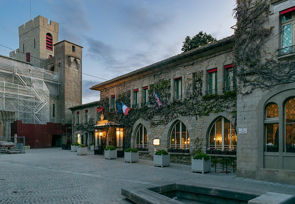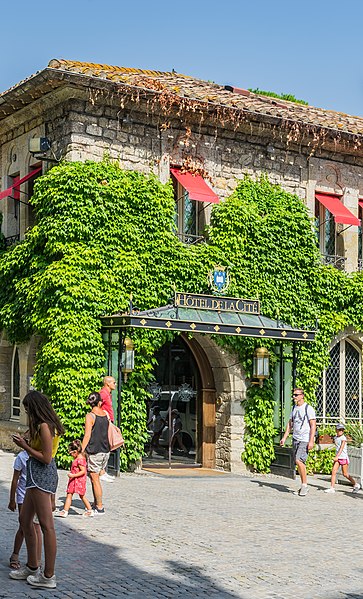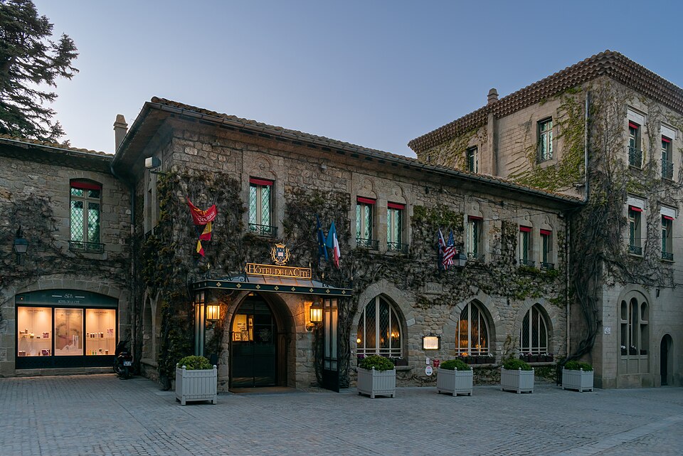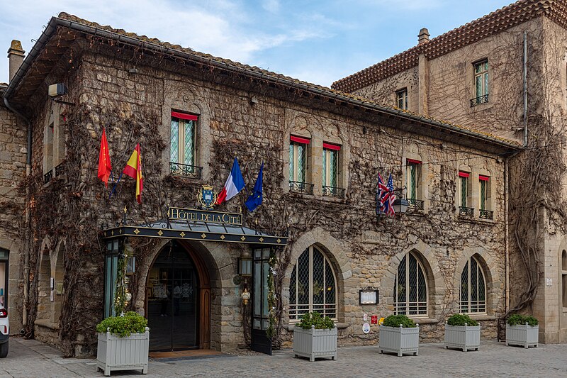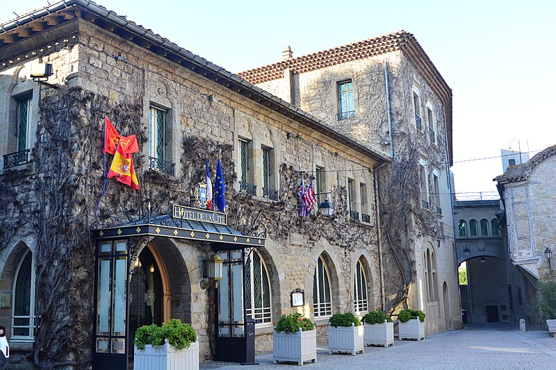 L'Hôtel de la Cité, situé à l'intérieur de la Cité de Carcassonne, est un établissement de style néo-gothique référant au XVe siècle et orné d'un décor intérieur néo‑médiéval. Il s'élève à l'emplacement de l'ancien palais épiscopal, transféré dans la ville basse en 1764 par l'évêque Armand Bazin de Bezons ; le bâtiment devint propriété de l'État à la Révolution puis fut vendu en 1795 à un négociant qui l'utilisa comme carrière de pierres. Le projet hôtelier, initié par Jules Cadenat et Michel Jordy, fut inauguré en 1909 et se développa avec l'appui de la « Société de la Cité », créée en 1911. L'établissement devint rapidement une étape importante entre la côte Basque et la côte d'Azur et connut une occupation allemande pendant la Seconde Guerre mondiale avant de retrouver son prestige sous la direction de François Lassere. Le restaurant ferma en 1969 puis l'hôtel en 1987 ; deux ans plus tard il fut racheté par Jean‑Michel Signoles, qui le modernisa et relança le restaurant avec Michel Del Burgo. Repris par le groupe Orient Express en 1997, l'hôtel fit l'objet d'importants travaux de remise aux normes internationales et fut agrandi par l'annexion de l'hôtel mitoyen « Dame Carcas ». Le rez-de-chaussée, restauré par des spécialistes du patrimoine, est inscrit au titre des monuments historiques par arrêté du 30 octobre 1998. L'établissement obtint sa cinquième étoile en octobre 2010 ; un incendie accidentel le 21 avril 2011 entraîna la fermeture partielle de l'hôtel avant son retrait du groupe Orient-Express. Après un passage sous la marque MGallery du groupe Accor, il appartient depuis août 2011 au groupe « Cité Hôtels » de la famille Pujol, et Xavier Lablaude est revenu à la direction en avril 2025. Le décor intérieur comprend des lambris, des peintures murales (fleurs de lys et lions dans la salle de restaurant), des boiseries de staff, et une frise représentant des scènes de la vie de la Cité au Moyen Âge ; le rez-de-chaussée présente un pavement mosaïqué de qualité. Dans le salon donnant sur le jardin, quatre tableaux de grand format signés Jacques Ourtal et datés de 1927 évoquent la Cité depuis l'oppidum gaulois jusqu'à sa splendeur royale ; le peintre héraldiste Henri Sivade a largement contribué au décor du restaurant et Henry Pringuet a décoré l'ancien fumoir de tableaux consacrés aux fêtes et jeux locaux. Le restaurant gastronomique La Barbacane, au rez-de-chaussée et ouvert sur le jardin et l'enceinte médiévale, a été distingué par le Guide Michelin et obtint une étoile en 1952. En 2025 la cuisine est dirigée par le chef Jérôme Ryon, lauréat du Prix culinaire international Pierre‑Taittinger 2005 ; parmi ses prédécesseurs figurent Franck Putelat, Christophe Turquier et Michel Del Burgo. L'hôtel dispose de sa propre boulangerie, d'une cave de plus de 8 000 bouteilles couvrant 800 références enrichie sous la supervision du chef sommelier Georges Gracia (1992–2013) puis de Baptiste Ross‑Bonneau (2013–2019), et d'un bar-bibliothèque réputé pour ses barmans et ses cocktails. Les équipements comprennent un espace modulable « l'Espace de conventions Saint‑Nazaire » de 580 m2 aménagé dans l'ancien garage, la Villa San Michèle à côté de la basilique, un spa, une piscine extérieure et un parking privé sécurisé desservi par des navettes. L'hôtel a accueilli des événements culturels et politiques, notamment l'enregistrement de l'album Carcassonne de Stéphan Eicher en 1993 (dans la chambre 33 devenue la 218) et le sommet franco‑espagnol du 6 novembre 2003 réunissant le président Jacques Chirac et le premier ministre José Maria Aznar. De nombreuses personnalités ont séjourné et signé les livres d'or de l'établissement, parmi lesquelles Walt Disney, Rudyard Kipling, Douglas Fairbank, Mary Pickford, James Stewart, Buster Keaton, Gary Cooper, Raymond Poincaré, Philippe Pétain, Winston Churchill, Édouard VIII, Elizabeth Bowes‑Lyon, Grace de Monaco, Leka Zogu, Bao Dai, Jean d'Orléans, Maurice Chevalier, Fernandel, Jean Marais, Maria Casarès, Colette, Sacha Guitry, Montserrat Caballé, Julio Iglésias, Roman Polanski, Johnny Deep, Vanessa Paradis, Alain Delon, Claude Lelouch, Johnny Hallyday, Kim Wilde, Paul Verhoeven, Kate Mosse, Michael Jackson, Robert Plant, Sting, Lenny Kravitz, Bob Dylan ou Robert de Niro. Un accès direct au théâtre Jean Deschamps facilite le séjour des artistes lors du Festival de Carcassonne. Parmi les sources figurent notamment l'ouvrage de Bernard Vaissiére, L'Hôtel de la Cité, histoire de la Cité et de ses environs.