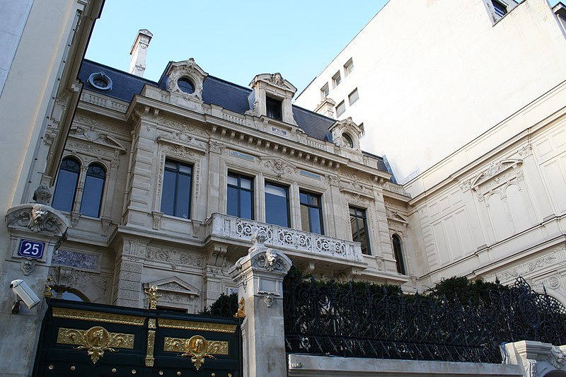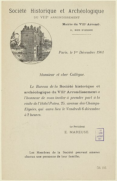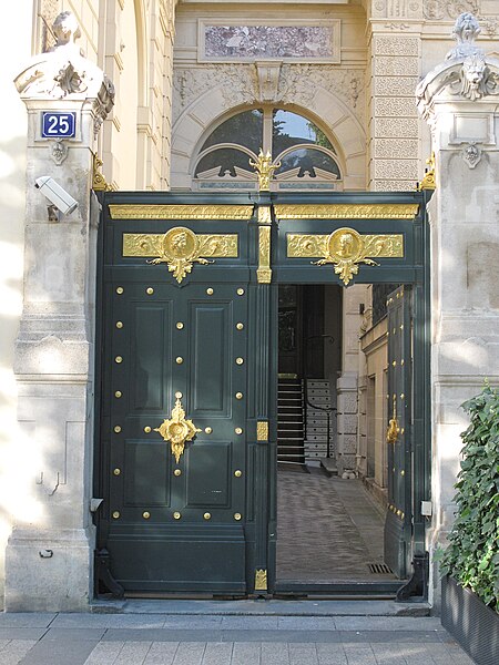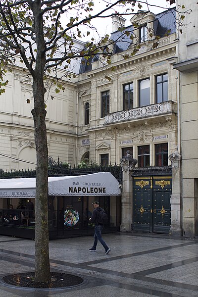 L'hôtel de la Païva est un hôtel particulier du 8e arrondissement de Paris, construit entre 1856 et 1865 au 25, avenue des Champs-Élysées par La Païva, née Esther Lachman (1819-1884), aventurière d'origine polonaise devenue marquise portugaise puis comtesse prussienne. Elle y donnait des fêtes restées célèbres. En 1903, l'ancienne demeure devint le siège du Travellers Club, qui l'acquit en 1923, et l'édifice a été classé monument historique en 1980. Épouse du comte prussien Henckel von Donnersmarck, elle réalisa le projet de construire un somptueux hôtel sur l'avenue des Champs-Élysées. Selon la légende, lors d'un épisode de sa jeunesse elle fit le vœu d'élever « la plus belle maison de Paris » à l'endroit où elle était tombée d'une voiture. La comtesse fit appel à l'architecte Pierre Manguin pour un édifice de style Renaissance italienne, doté d'un jardin suspendu ; les travaux, longs et coûteux, atteignirent 10 millions de francs or. À partir de 1866, malgré son exclusion des salons aristocratiques, elle y reçut de nombreuses personnalités comme les frères Goncourt, Théophile Gautier, Gambetta, Renan, Taine et Émile de Girardin. Avec son mari, elle fit construire en Silésie le château de Neudeck, conçu par Hector Lefuel et marqué par des décors proches de ceux de l'hôtel parisien ; cette demeure fut incendiée en 1945 puis rasée en 1962. Soupçonnée d'espionnage, elle quitta la France en 1877 pour se retirer à Neudeck, où elle fit transférer une partie du mobilier et mourut le 21 janvier 1884 à soixante-cinq ans. L'hôtel resta fermé plusieurs années après son départ. Veuf, le comte remit en vente la propriété ; en 1893 il la vendit au banquier berlinois James Soloschin, et un ancien cuisinier du tsar, Pierre Cubat, y ouvrit un restaurant réputé fréquenté par le Tout-Paris, qui ferma en 1898. Un projet d'y installer la mairie du 8e arrondissement n'aboutit pas. Depuis 1903, le bâtiment conserve son grand escalier en onyx jaune, sa salle de bains de style mauresque, ses sculptures, ses peintures et le plafond peint par Paul Baudry dans le grand salon. On y retrouve la double entrée de la cour, avec une porte pour l'entrée des équipages et une autre pour leur sortie, bien que la cour ait été remplacée par des établissements commerciaux puis par un restaurant. L'escalier en onyx, aux formes contournées, est surmonté d'un lampadaire monumental en bronze et bordé de statues en marbre grandeur nature, dont Dante, Pétrarque et Virgile, datées de 1865 et réalisées par Louis-Ernest Barrias. Quatre médaillons peints représentent Rome, Florence, Venise et Naples. L'onyx utilisé, dit « marbre onyx d'Algérie », provenait d'une carrière près d'Oran redécouverte en 1849 et connut un grand succès lors de l'époque Napoléon III et à l'Exposition universelle de 1867. La salle de bains mauresque est ornée de carreaux de faïence de Théodore Deck et abrite une baignoire exceptionnelle : un coffre en onyx blanc recouvrant une cuve en bronze argenté, avec des robinets en bronze doré incrustés de turquoises, œuvre de Beboutoff, sauvée de la destruction. Cette cuve, sculptée par Donnadieu dans un bloc d'onyx (1,85 m - 900 kg) et tapissée de bronze argenté, comporte trois robinets destinés à verser divers liquides ; la marquise y prenait, dit-on, des bains de lait, de tilleul ou de champagne. Le grand salon, ouvert sur l'avenue des Champs-Élysées, présentait quatre consoles identiques aux dessus en marbre, onyx et albâtre et aux piètements en atlantes de bronze doré par Jules Dalou, aujourd'hui au musée d'Orsay et aux Arts décoratifs. Les décors comprenaient également une toile d'Antoine Lévy et des figures de marbre d'Eugène Delaplanche représentant L'Harmonie et La Musique. La chambre à coucher conservait une cheminée encadrée de deux nymphes en bronze doré et un entourage de cheminée en malachite, unique à Paris ; cette pièce est devenue le restaurant du cercle et a gardé son plafond oriental et la couronne de marquise qui surmontait le lit. Un lit spectaculaire en acajou de Cuba, autrefois propriété de la marquise, figura à des ventes successives, notamment en 1946 et lors d'une exposition à Turin en 1992, puis dans une vente Artcurial en 2006. Le jardin d'hiver, aujourd'hui disparu, s'étendait à l'arrière, et les écuries pouvaient abriter neuf chevaux et six voitures. Pour la réalisation de l'hôtel, Manguin fit appel à des sculpteurs et artistes tels que Barrias, Léon Cugnot, Eugène Delaplanche, Eugène Legrain, Albert-Ernest Carrier-Belleuse et Jules Dalou, et La Païva servit de modèle pour plusieurs œuvres, dont le plafond Le Jour pourchassant la Nuit. Pendant la construction, qui dura près de dix ans, la presse évoqua régulièrement l'avancement des travaux ; un chroniqueur, Aurélien Scholl, résuma la curiosité publique en plaisantant que « le principal est fait. On a posé le trottoir ! ». Le coût exceptionnel des travaux fit également sensation à l'époque.