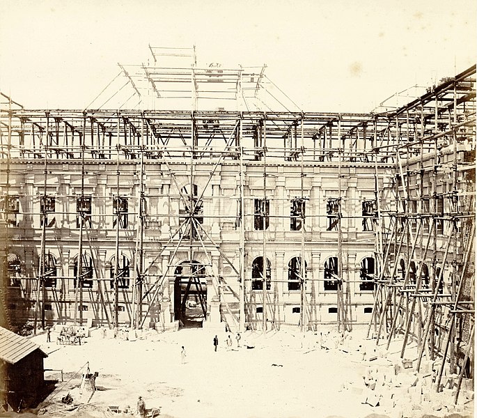 Le projet fut initié par le préfet Charlemagne Émile de Maupas, qui confia la réalisation à l'architecte départemental Auguste Martin après approbation du conseil général. Les terrains furent acquis et les immeubles rasés en novembre 1861, la première pierre fut posée le 18 septembre 1862 et les travaux progressèrent rapidement. L'emplacement, établi sur les anciens fossés et remparts de 1669, obligea à des fondations spéciales en raison de l'instabilité du sol ; ce même problème réapparut lors de la création d'un parking souterrain, nécessitant des injections de béton après déstabilisation de la façade principale. En novembre 1864, Auguste Martin démissionna à la suite de mésententes et de dépassements de budget ; il fut remplacé par l'architecte parisien François‑Joseph Nolau, reconnu pour son expérience des décors intérieurs. Les travaux furent achevés fin 1866 ; le préfet Maupas prit possession des lieux en décembre 1866 et inaugura l'édifice le 1er janvier 1867.