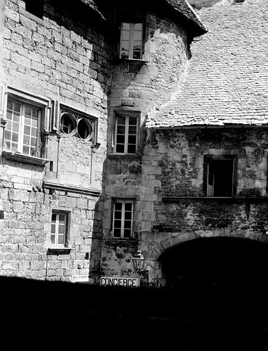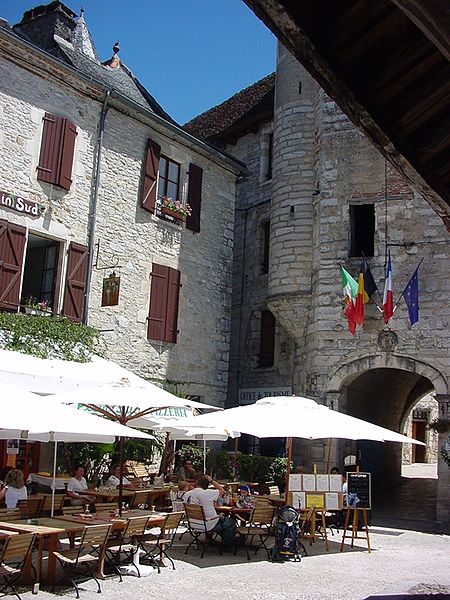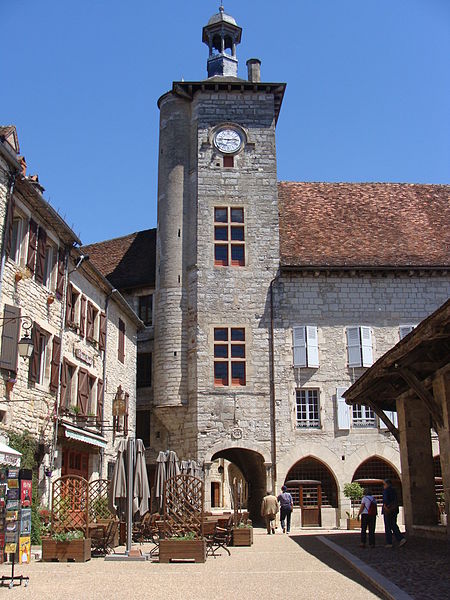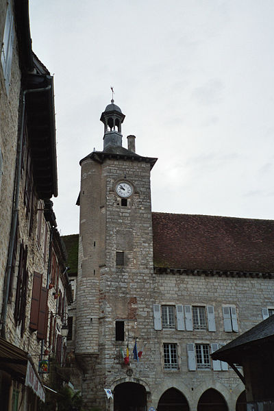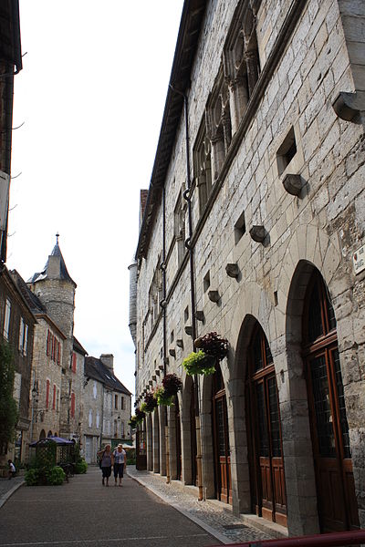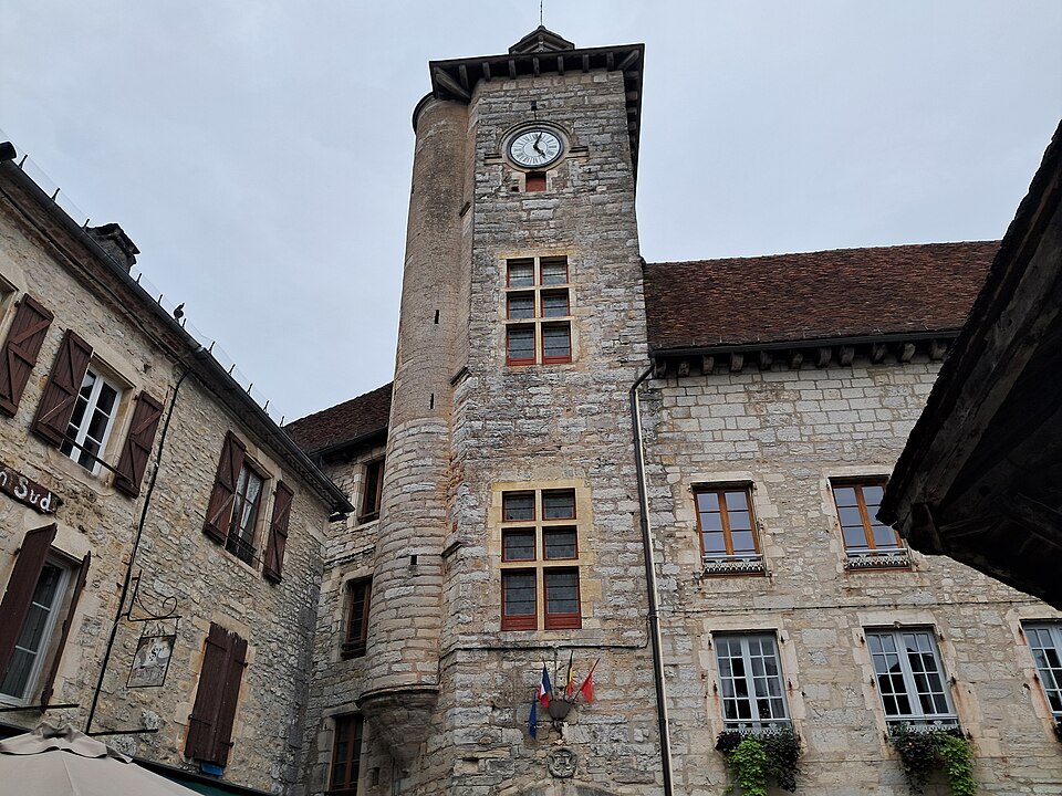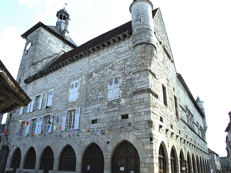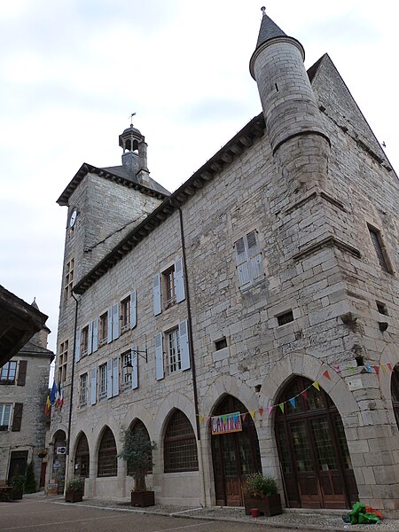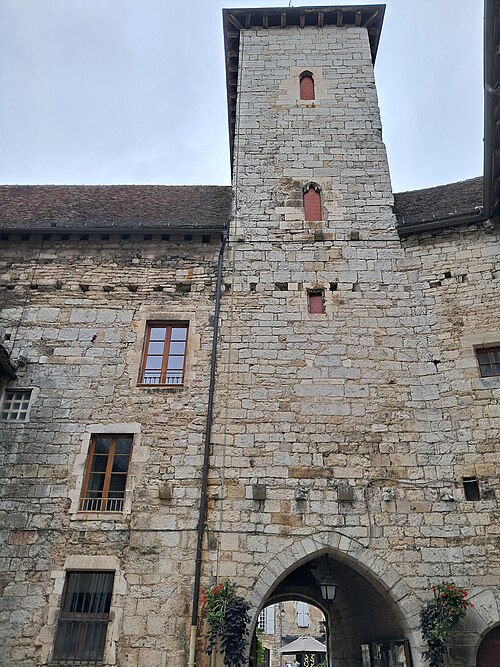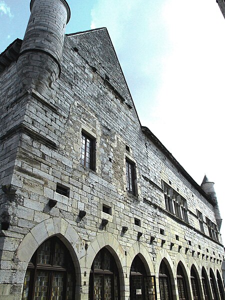 L'ancien hôtel de la Raymondie, aujourd'hui hôtel de ville de Martel, est un édifice de plan pentagonal construit vers 1330 autour d'une vaste cour intérieure pourvue d'un puits, avec des échauguettes aux angles et une tour barlongue transformée en beffroi protégeant la porte principale. Conçu à l'origine comme maison commune, il présente une grande homogénéité de construction et de décor qui traduit un chantier mené rapidement, probablement dans les années 1320, l'hôtel "neuf" pouvant être achevé en 1329 ; une datation dendrochronologique d'une charpente a cependant donné 1332. La paternité de l'édifice a fait l'objet de débats : la tradition locale l'attribuait au vicomte Raymond, Henri Ramet a proposé l'intervention d'un receveur général nommé Bernard Raymundi et l'achèvement par son gendre Pierre Stéphani, mais cette hypothèse repose sur une note non vérifiée et contredit les recherches de L. de Valon, qui relève la présence des Stéphani titulaires de la Raymondie dès la fin du XIIIe siècle et la mention en 1329 d'« hôtel neuf de la Raymondie ». Les Stéphani et leurs descendants ont possédé l'hôtel au Moyen Âge, lui rendant hommage au vicomte de Turenne à plusieurs reprises, et la famille a cédé ensuite la demeure à des lignées bourgeoises et seigneuriales par alliances et ventes successives. Durant la guerre de Cent Ans, les consuls firent fermer les arcades du rez-de-chaussée pour en faire un refuge défensif pour la population ; les propriétaires de l'époque contestèrent cette transformation mais ne purent empêcher la modification, et l'aile est dut être rebâtie après la guerre. À la fin de l'Ancien Régime la commune prit à ferme une partie de l'édifice puis l'acquit après la Révolution ; l'acquisition des trois ailes a été autorisée par la préfecture en 1808 et la municipalité y a installé des services et loué des boutiques au rez-de-chaussée. Classé Monument historique dès 1906, l'édifice a fait l'objet de campagnes de restauration successives : une intervention avant 1920, des travaux dans les années 1930 et 1940 aboutissant à la reconstitution de la majeure partie de la façade sur la rue de Senlis, puis de nouvelles campagnes depuis 1950, dont la restauration de la voûte du premier étage de la tour et la recréation des fenêtres à meneaux en 2012. Extérieurement, l'hôtel mesure hors œuvre environ 26,50 m sur 24 m et s'organise en quatre ailes autour d'une cour d'environ 16,30 m sur 14 m, accessible par un porche surmonté de la tour-beffroi ; il comporte trois niveaux et de petites échauguettes sur les façades sud et est. Le rez-de-chaussée comportait autrefois des arcades destinées au commerce — onze sur la façade sud et sept sur la façade ouest —, protégées à l'origine par un auvent continu dont subsistent consoles et trous d'ancrage, et percées au-dessus d'ouvertures de tirage d'éclairage. L'étage était réservé à l'habitation et aux salles de réception, desservi autrefois par une galerie en bois en retour sur cour qui a partiellement disparu ; un escalier en vis inséré à l'angle nord-est appartient à une campagne de transformation des XVIe–XVIIe siècles. Les vestiges du rez-de-chaussée de l'aile sud montrent de grands arcs brisés, témoignant d'une vaste salle initialement divisée en boutiques par des cloisons légères, tandis que la distribution intérieure et les ouvertures ont été remaniées au fil des remaniements. La façade sud présente une enfilade d'arcades Renaissance rénovée dans les années 1970, complétée par des fenêtres à meneaux, des médaillons, des cheminées et un bas-relief de la même période. Le premier étage accueille le musée d'Uxellodunum, qui conserve des collections protohistoriques et gallo-romaines issues du Puy-d'Issolud, des séries de pots à pharmacie des XVIIe et XVIIIe siècles et des cartes anciennes. Parmi les éléments protégés du décor et du mobilier figurent deux cheminées du XVIIe siècle classées au titre des immeubles en 1906, une peinture murale du XVIe siècle découverte lors de la dépose d'une cheminée, un crucifixion provenant de l'ancienne salle de justice classé au titre d'objet en 1904, le tableau Les oliviers à Sfax d'Henri Rousseau (1902) et la table du conseil municipal. Les façades sur rue et sur cour de la partie donnant sur la rue de Senlis ont fait l'objet de protections supplémentaires en 1926, ainsi que les parties situées sur la place du Marché et la rue Tournemire.