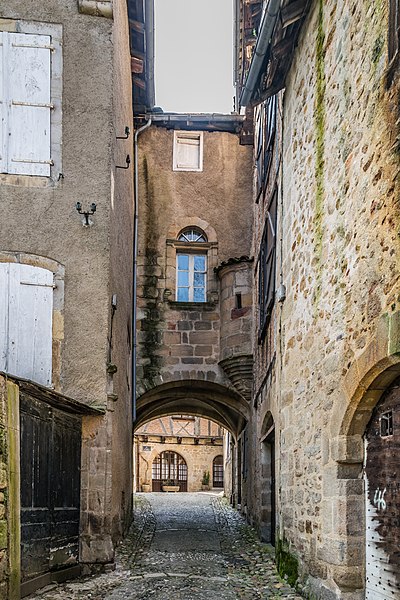 Deux arcs doubleaux surbaissés soutiennent les façades en pierre au-dessus d'une étroite ruelle. L'espace entre eux est voûté par des croisées d'ogives dont les nervures s'engagent dans les arcs doubleaux. À l'angle, une échauguette en encorbellement forme un petit réduit accessible par une porte au premier étage.