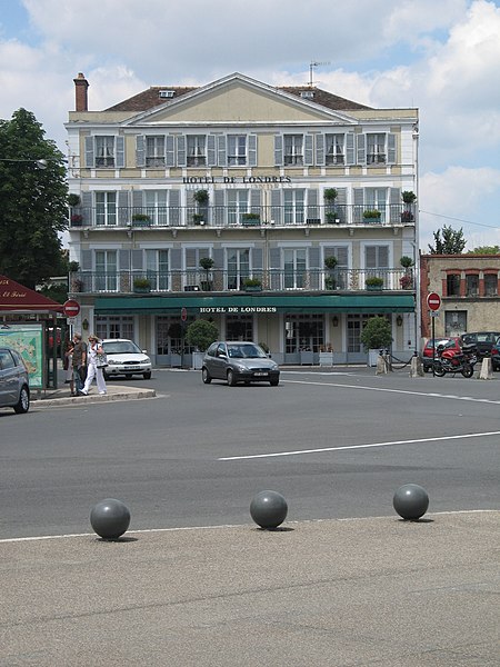 L'hôtel de Londres est situé au 1, place du Général-de-Gaulle à Fontainebleau (Seine-et-Marne), à l'angle de la rue Royale et du prolongement de la rue Ferrare; sa façade principale fait face au château de Fontainebleau. L'accès se fait par une porte sur la rue Royale. Le bâtiment principal comporte quatre niveaux et présente des ouvertures sur les façades sud-est, sud-ouest et nord-ouest; celles du deuxième et du troisième étage de la façade sud-est sont équipées de balcons. Le nom de l'hôtel est porté par une enseigne et peint au-dessus de l'entrée sur la rue Royale; les façades sont peintes en blanc et en blanc cassé. Les façades et les toitures sont inscrites au titre des monuments historiques par arrêté du 26 novembre 1928, l'édifice étant une propriété privée. La façade de l'hôtel apparaît en arrière-plan du tableau La Place Solférino, Fontainebleau (Gabriel Fournier, 1947) et sur une photographie de 1954 prise par Emmanuel-Louis Mas; elle est également visible dans le film Le Squale (Claude Boissol, 1990), bien que les chambres montrées dans le film ne soient pas celles de l'hôtel de Londres. L'hôtel est mitoyen de l'hôtel de Ferrare et voisin du quartier Boufflers; il se trouve à proximité de l'hôtel de la Surintendance des Bâtiments, des immeubles du 3 et du 5 rue Royale et du château de Fontainebleau. Des notices et ressources sont consultables dans la base Mérimée, sur la plateforme Mémoire et sur le site officiel.