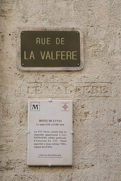 L'Hôtel de Lunas, aussi appelé hôtel d'Hébrard, est un hôtel particulier situé dans l'Écusson, au centre-ville de Montpellier (Hérault). Il se développe entre une cour d'honneur et un jardin, formant un ensemble en U avec une aile en retour sur le jardin. La construction initiale remonte à une grande maison édifiée au XVIe siècle par Denis (Denys) Fontanon, que sa famille conserva pendant près de quatre-vingt-neuf ans. En 1639, Guillaume et Marguerite d'Hébrard acquièrent la demeure et, à partir de 1671, des travaux la transforment en trois corps en U autour d'une cour, avec un escalier d'honneur conduisant aux salles de réception du premier étage. En 1707 Henri de Bosc devient propriétaire ; il agrandit l'édifice en acquérant des parcelles voisines et fait aménager au premier étage une vaste galerie de bal ouvrant sur un jardin à la française. Cette galerie comportait sept fenêtres à plein cintre faisant face à sept miroirs et douze panneaux de laque représentant les mois, soutenus par des panneaux figurant les douze signes du zodiaque. Henri de Bosc adosse le bâtiment au rempart et fait creuser dans celui-ci des niches utilisées comme placards ; la trace du chemin de ronde subsiste dans les sous-sols. En 1737, Antoine Jean Viel, seigneur de Lunas, donne son nom à la maison et fait apposer dans la cour d'honneur un parement orné du blason familial. Aux XVIIIe siècle, les façades sur jardin affichent une ordonnance soignée, ponctuée notamment par l'encadrement d'une baie du premier étage avec fronton cintré, clef, remplissages et consoles sculptées. En 1769 Guillaume Granier acquiert l'hôtel ; après le démantèlement des remparts à la fin du XVIIIe siècle, il procède à d'importantes extensions et aménagements du jardin et des communications intérieures. Au XIXe siècle la demeure subit de nouvelles transformations, dont la division de la galerie et la redistribution des panneaux de laque sur les cloisons des deux salons centraux. Félix Sabatier, propriétaire dans la seconde moitié du XIXe siècle, intègre une maison voisine, ajoute un étage pour le service et reconfigure le rez-de-chaussée et l'entresol dans le goût parisien. Les travaux menés en 1855 donnent à l'hôtel l'aspect qui lui est resté, avec la construction d'un second commun, l'aménagement d'une cour de service et l'ouverture d'un portail monumental. Le jardin a été transformé au début du XXe siècle par la suppression des rocailles posées au XIXe siècle. L'ameublement du rez-de-chaussée date du milieu du XIXe siècle et a été conçu pour s'harmoniser avec un décor intérieur contemporain : décor et mobilier y sont indissociables. Deux salons centraux conservent une décoration du XVIIIe siècle, et chaque pièce de réception illustre un style particulier (salle à manger de style Renaissance, salon de musique de style rocaille, etc.). La chambre de Madame et le salon de l'Académie, situés au rez-de-chaussée, sont entièrement tendus de tissus, comme en témoignent les décors conservés. L'entrée principale se trouve au n°10 de la rue de la Valfère ; la porte cochère arrière est visible depuis le boulevard Ledru-Rollin et le jardin est partiellement perceptible depuis l'angle avec la rue Poitevine. L'hôtel est accessible par la station de tramway Peyrou - Arc de Triomphe (ligne 4) ; des stations de Vélomagg' et des équipements facilitant l'accès aux personnes à mobilité réduite desservent le site. Implanté dans le quartier de la Valfère, l'hôtel conserve les traces de son rapport aux anciens remparts et au chemin de ronde, éléments qui ont façonné son implantation. L'édifice bénéficie de protections au titre des monuments historiques, avec l'inscription de son grand escalier d'honneur et le classement de ses façades, toitures et de divers salons. Propriété de l'État depuis 1974, il est géré par le Centre des monuments nationaux, qui y assure animations et programmation. Une partie de l'aile nord est louée à des bureaux et cabinets professionnels afin de contribuer à l'entretien du monument. La longue histoire de l'hôtel et son mobilier ont fait l'objet de nombreuses études et publications spécialisées.