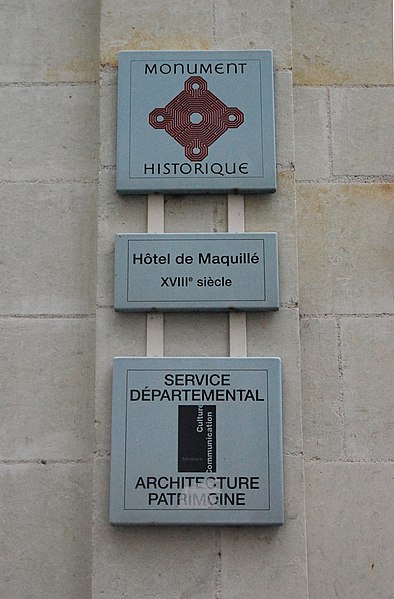 L'hôtel de Maquillé est un hôtel particulier du XVIIIe siècle situé dans le centre-ville d'Angers, dans le département de Maine-et-Loire. Il remplace l'ancien hôtel du prévôt de Craon, devenu au XVIIIe siècle l'hôtel des Esmereaux, dont Anselme René Bucher de Chauvigné fut propriétaire en 1779. Reconstruit à partir de 1788 pour Antoine Séraphin de Maquillé, il a été réalisé par l'architecte angevin Michel Bardoul de la Bigottière. L'élévation antérieure se distingue par un ordre colossal qui rythme la façade, et les pièces principales du premier étage présentent un riche décor stuqué; la salle à manger et la chambre de Madame de Maquillé sont peintes en faux marbre et cette dernière conserve des trumeaux figurés. L'escalier intérieur et plusieurs cheminées, situés dans les pièces de service du rez-de-chaussée et dans les chambres du deuxième étage, sont d'origine. La garde-robe de Madame de Maquillé, installée en hors-oeuvre sur la cour, est légèrement postérieure et semble liée à l'extension des communs sur la cour arrière. Au deuxième quart du XIXe siècle, la couverture en terrasse du logis, alors revêtue de cuivre, ainsi que le belvédère de l'escalier furent remplacés par un toit en pavillon et une verrière zénithale. Le cadastre relève déjà en 1840 l'envahissement de la cour postérieure par des constructions annexes. La garde-robe fut intégralement réaménagée en 1927 par l'architecte Henri Jamard pour le banquier Georges Fortin. Durant les années 1970, l'antichambre du premier étage perdit son décor et une partie des communs fut démolie. Une restauration intérieure du premier étage eut lieu en 1977-1978; les extérieurs ont ensuite fait l'objet de travaux en 1999-2001, suivis d'une nouvelle campagne intérieure en 2004-2005 portant sur le rez-de-chaussée, l'escalier et le deuxième étage, ces interventions s'inscrivant dans une période de restauration menée entre 1999 et 2005. L'édifice est accessible depuis la rue du Cornet (entrée principale, n°18) et la rue du Canal (10 bis) et accueille le service territorial de l'architecture et du patrimoine du département. Pour ses façades et toitures, son portail sur la rue du Cornet, l'escalier intérieur avec sa rampe en fer forgé, ainsi que pour l'ancienne salle à manger avec son poêle en faïence et l'ancienne chambre de Madame de Maquillé, l'hôtel est inscrit au titre des monuments historiques depuis le 9 novembre 1984. Par ailleurs, pendant la Révolution, les représentants en mission l'occupèrent, notamment Marie Pierre Adrien Francastel, et le 24 Floréal An IV il servit de quartier général à l'Armée des côtes de l'Océan du général Hoche.