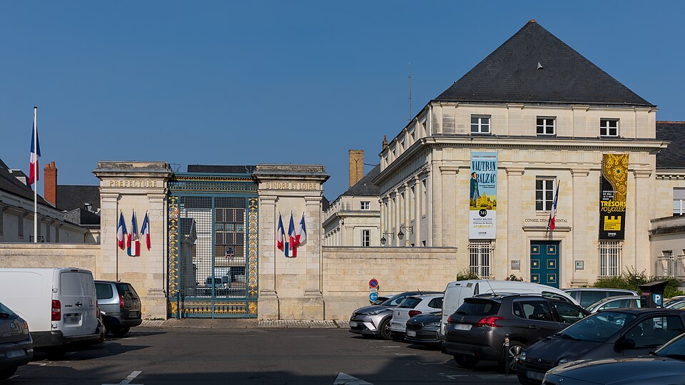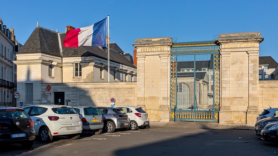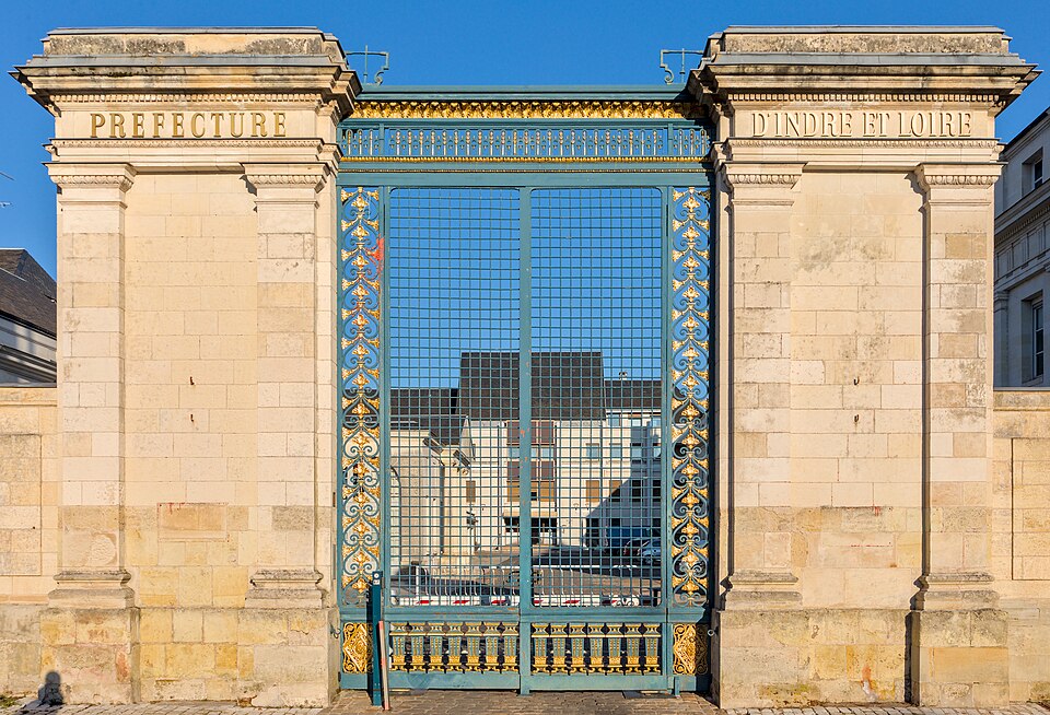 Préfecture — Hôtel de préfecture d'Indre-et-Loire, situé dans le Vieux-Tours à Tours (Indre-et-Loire). L'édifice occupe le site de l'ancien couvent de la Visitation, fondé en 1633 ; son église, attribuée à Jacques Lemercier selon Jacques-François Blondel, fut consacrée en 1639. Réservé par le département à la Révolution, le couvent a été aménagé en préfecture entre 1806 et 1820 par François Derouet, architecte et capitaine du génie, qui a conçu le projet et conduit les travaux de 1806 à 1811 ; la poursuite des travaux a été assurée par l'architecte de la vanne, avec exécution par les entrepreneurs tourangeaux Simon Nourisson et François Rousseau. Les transformations ont inclus la destruction de la chapelle et du chœur des religieuses, le rehaussement du niveau de la cour d'honneur (ancien préau), le remaniement des façades et des distributions, la fermeture du cloître, la reconstruction des escaliers, la reprise des pavillons nord-est et nord-ouest, la construction des pavillons sud-est et sud-ouest et l'aménagement de la place de la préfecture. La grille d'honneur de la grande porte provient du chœur de l'abbatiale de Beaumont-lès-Tours (1785) : elle se compose de panneaux en grillage formés de fers ronds s'entrecroisant et assemblés à trous renflés, encadrés sur un soubassement à balustres par des montants décorés et une corniche à carreaux, en fer forgé rehaussé d'ornements en bronze. Cette grille a été classée au titre des monuments historiques le 30 octobre 1917. Les boiseries du petit salon dit de Choiseul, datées du XVIIIe siècle (vers 1759), proviennent de l'ancienne Maison de l'Intendance à Tours ; les dessus-de-porte et autres boiseries de réception ont également été rapportés lors des aménagements. Des bustes de la façade sud donnant sur la cour d'honneur proviennent du château de Richelieu. Un pavillon a été construit au sud-est de la place de la préfecture vers 1860, puis le bâtiment sud a été prolongé vers l'ouest et la partie ouest aménagée vers 1960. La réunion du Conseil suprême interallié de Tours s'est tenue à la préfecture le 13 juin 1940. Parmi les éléments remarquables du site figurent le portail, sa grille en fer forgé et le bâtiment nord.