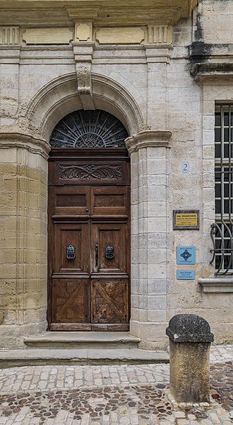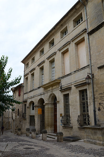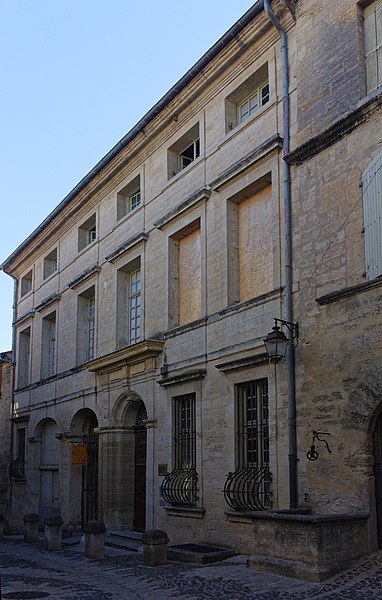 L'immeuble a dû être remanié au début du XIXe siècle. La façade s'ouvre sur trois portes indépendantes à encadrement en plein cintre, décorées de moulurations aux naissances; les autres baies sont rectangulaires et protégées par des entablements droits munis d'un larmier, sans décor. La porte biaise donne sur un corridor, à droite duquel se trouve une salle voûtée décorée de peintures de Sigalon, qui aurait servi de salle de prières. Au fond du couloir se situe un escalier en trois volées, doté d'une rampe en ferronnerie ornée de petits panneaux identiques; chaque panneau porte le dessin d'un balustre à volutes spiralées, complété par des C et des demi-spirales. L'encadrement supérieur est séparé de la main-courante par des rinceaux à volutes alternées. Les plafonds des grandes salles de l'étage ont été conservés dans leur état ancien; poutres et poutrelles sont décorées de peintures. Le décor de la salle des Vertus est consacré au thème de la Vierge.