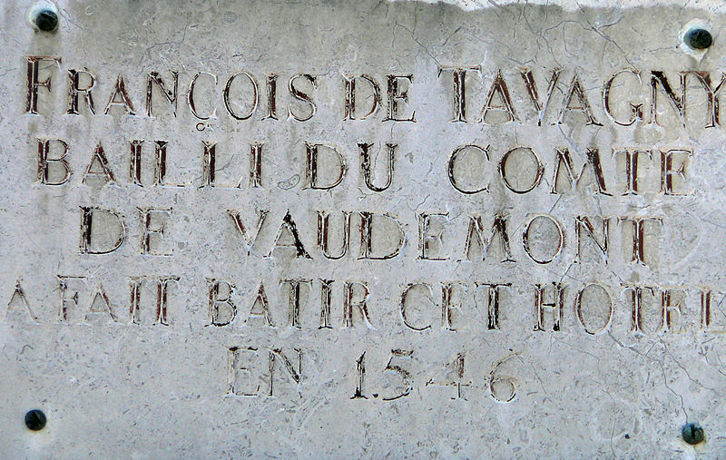 L'hôtel, de style Renaissance, présente une façade aux deux ordres de pilastres superposés. La porte d'entrée sur cour est flanquée de deux colonnes à chapiteau et la façade sur cour est ornée de quatre gargouilles. Il a été construit en 1546, comme l'indique la date portée, par le bailli François de Tavagny, qui fit également élever le château d'Etreval pour s'y réfugier en temps de peste. Les façades sur rue et sur cour sont classées.